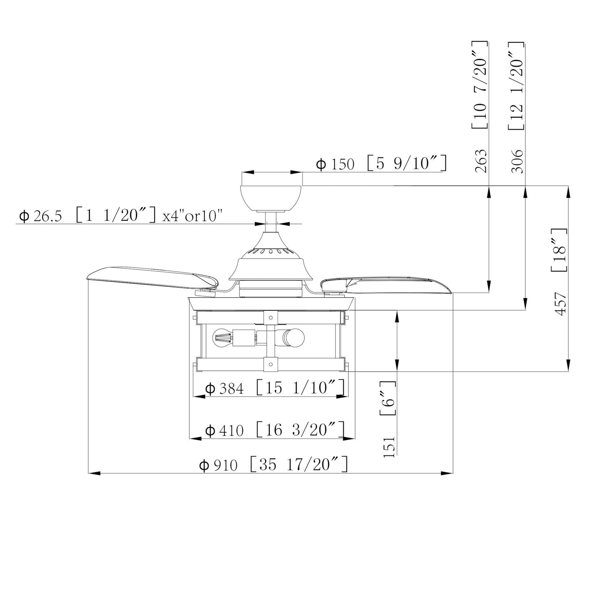 | 36” | Metal, Plastic | D1"-L4"&L10" | 3*PC Blades | 3*E26 Lamp holders no bulbs | AC Motor | Remote control | 3 | Yes | Dry location |