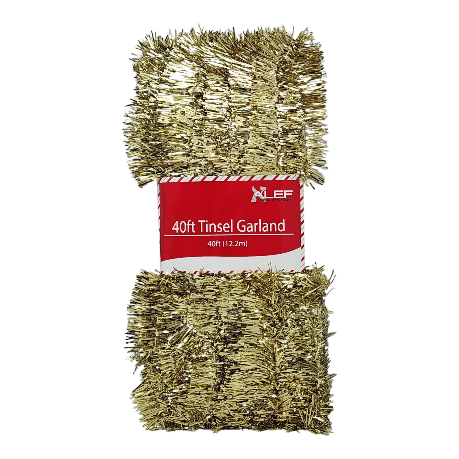 Bring a touch of glam to your festivities with our Glimmering Gold Tinsel Garland! This striking decoration stretches a generous 40 feet and adds a royal flair to any space. Made from lustrous foil, this garland sparkles in the light, making it an eye-catching centerpiece for your holiday décor. Gold, traditionally associated with luxury and prosperity, makes it a fitting choice for celebrations, reflecting the festive cheer of the season and inviting good fortune for the year to come.