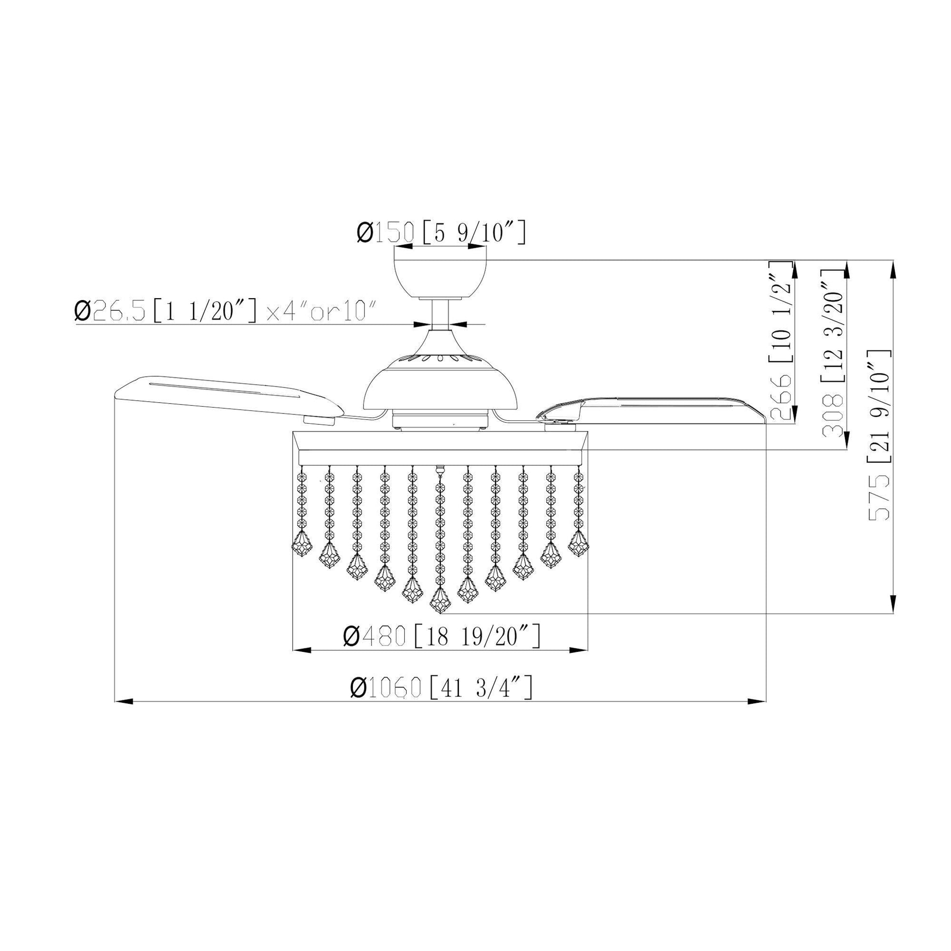 | 42” | Metal, PC, Crystal | D1"-L4"&L10" | 3*PC Blades | 6*E12 Lamp holders no bulbs | AC Motor | Remote Control | 3 | Yes | Dry Location |