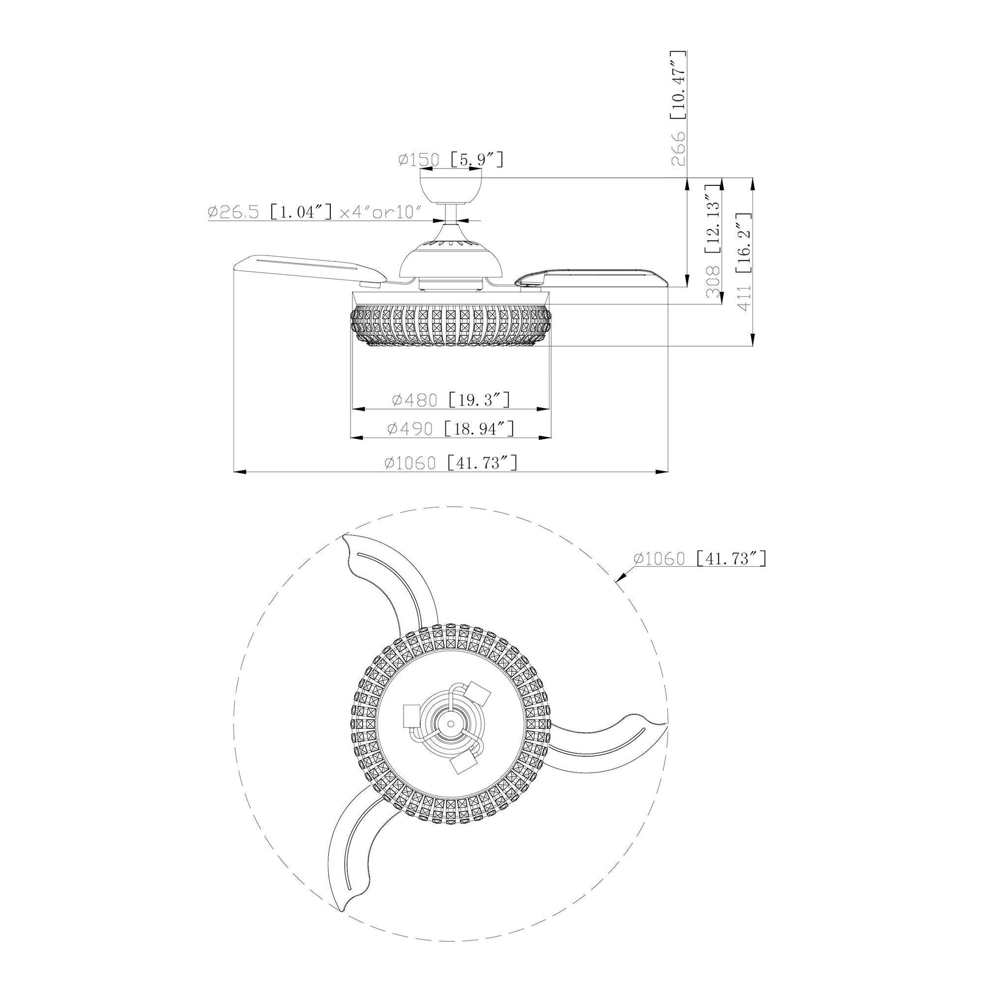 | 42” | Metal, PC, Crystal | D1"-L4"&L10" | 3*PC Blades | 3*E26 Lamp holders no bulbs | Remote control | GA012 | 3 | AC motor | Yes | Dry location |