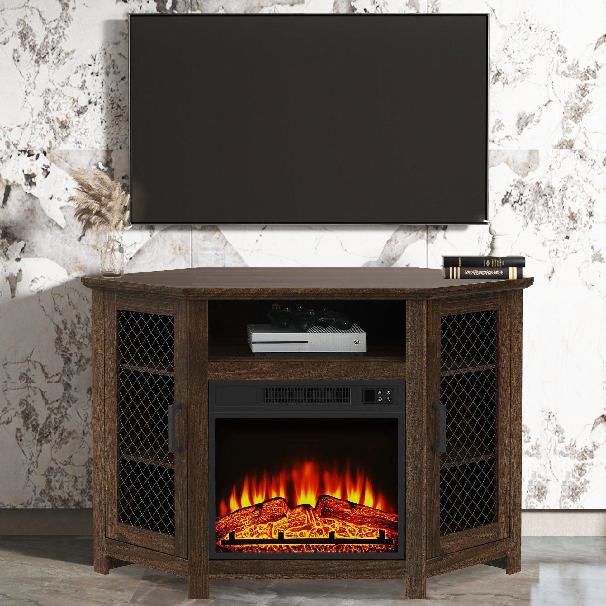 45" Corner Electric Fireplace TV Stands Console Table Insert 18" Electric Fireplace with 2 Metal Mesh Doors