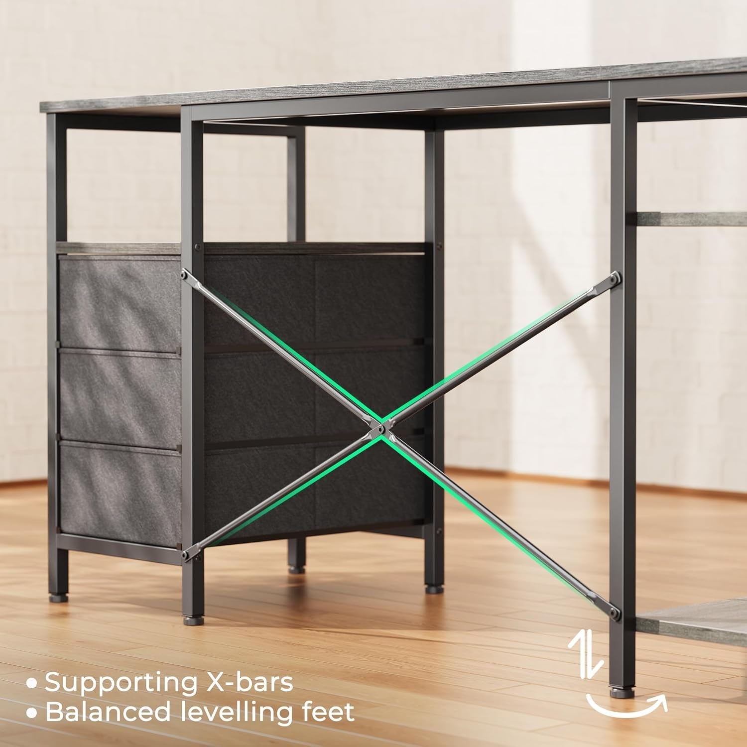 - 3 fabric drawers — easy-to-reach storage for office supplies, gaming accessories, and personal items, helping you maintain a clean, organized desk.
