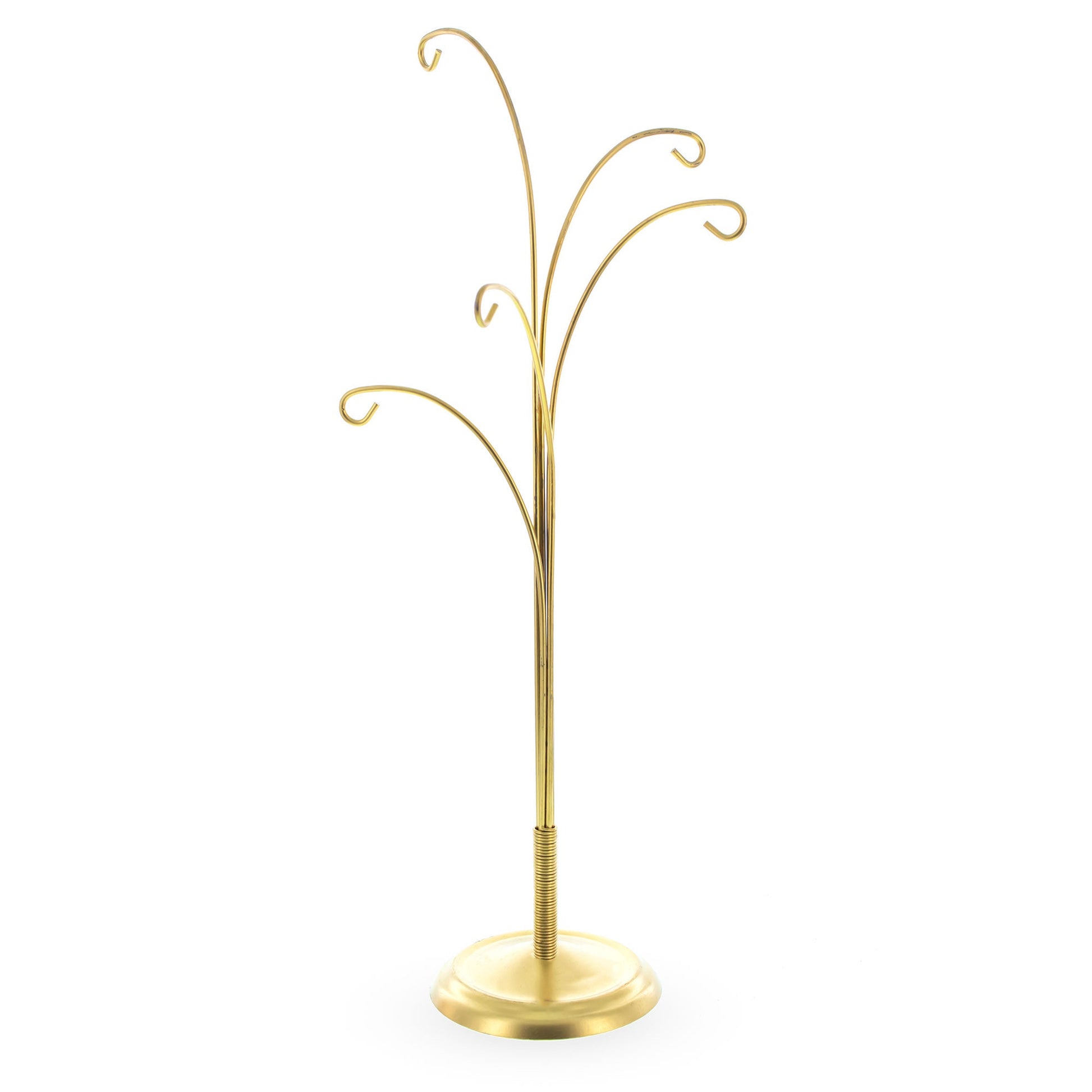 Add a touch of sculptural elegance to your display with this 14.5-inch 5-arm ornament stand, crafted in Poland from gold-coated metal. The stand features five gracefully curled arms that extend outward in a floral or tree-like pattern, offering multiple points to showcase your favorite hanging ornaments, charms, or collectibles. Its vertical design and artistic scrollwork provide both functionality and decorative appeal, making it ideal for holiday décor, weddings, or year-round home styling. The weighted round base ensures stability while complementing the overall sophisticated look. A beautiful blend of craftsmanship and style, perfect for those who appreciate both form and function.