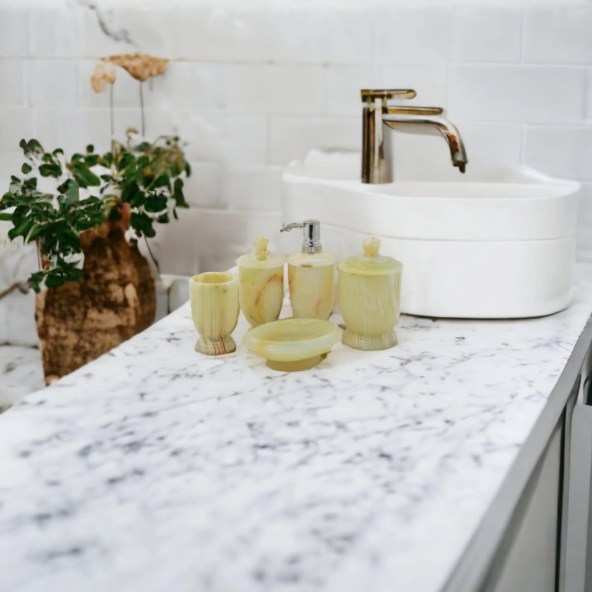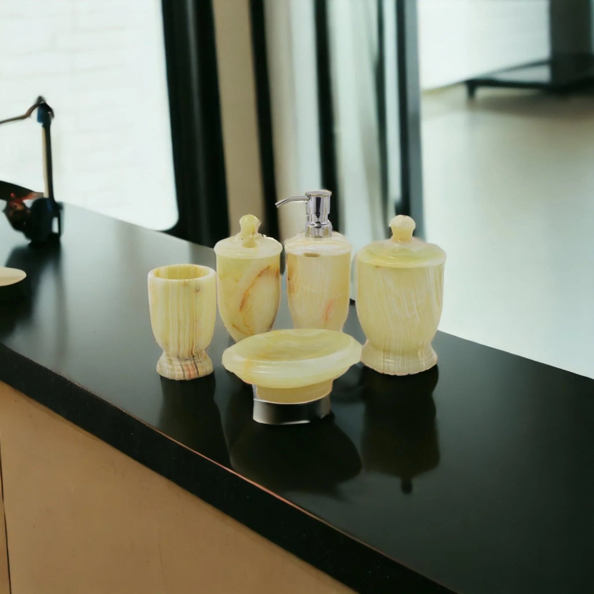 5-Piece Onyx Bath Set of Pistachio Onyx
