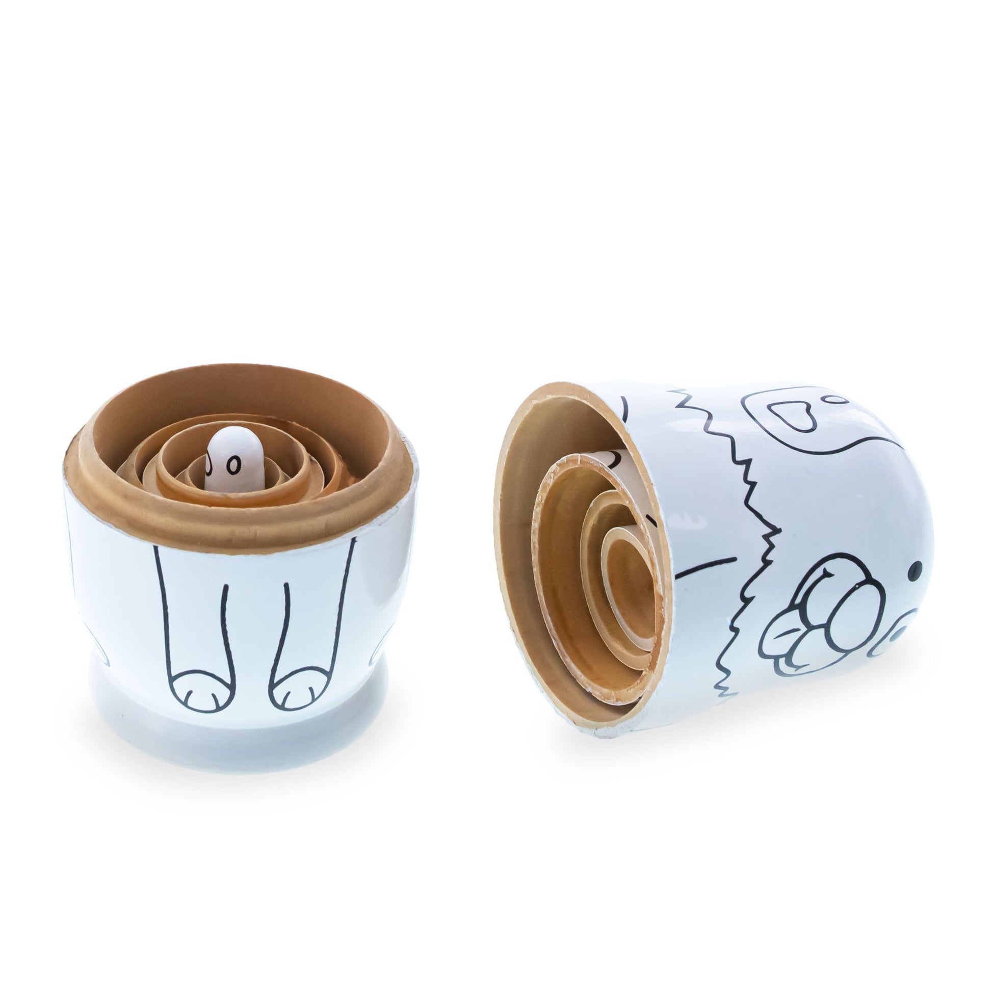5 Unpainted Animals Wooden Nesting Dolls Matryoshka 4.75 Inches