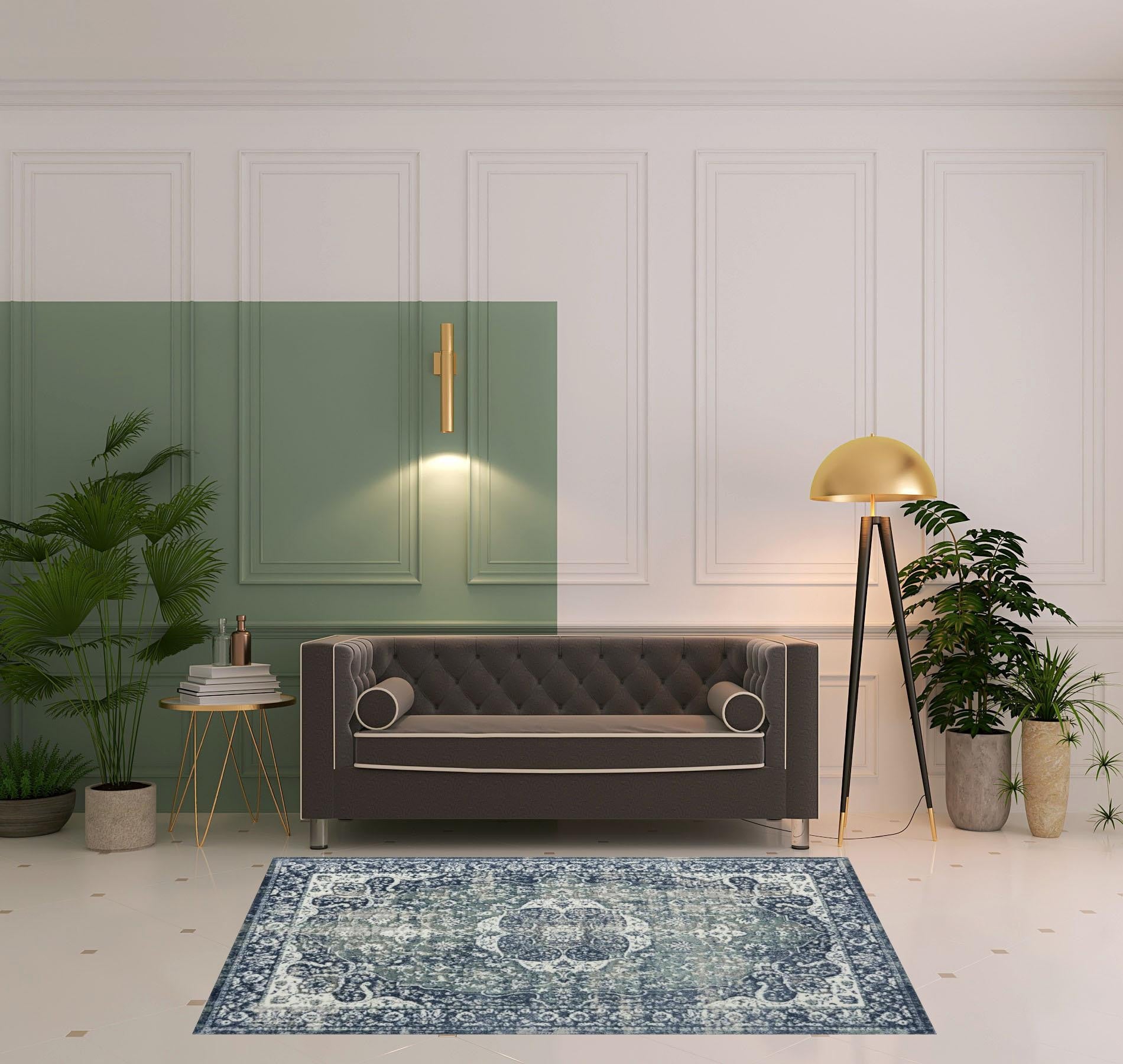 5' X 7' Blue Floral Stain Resistant Area Rug