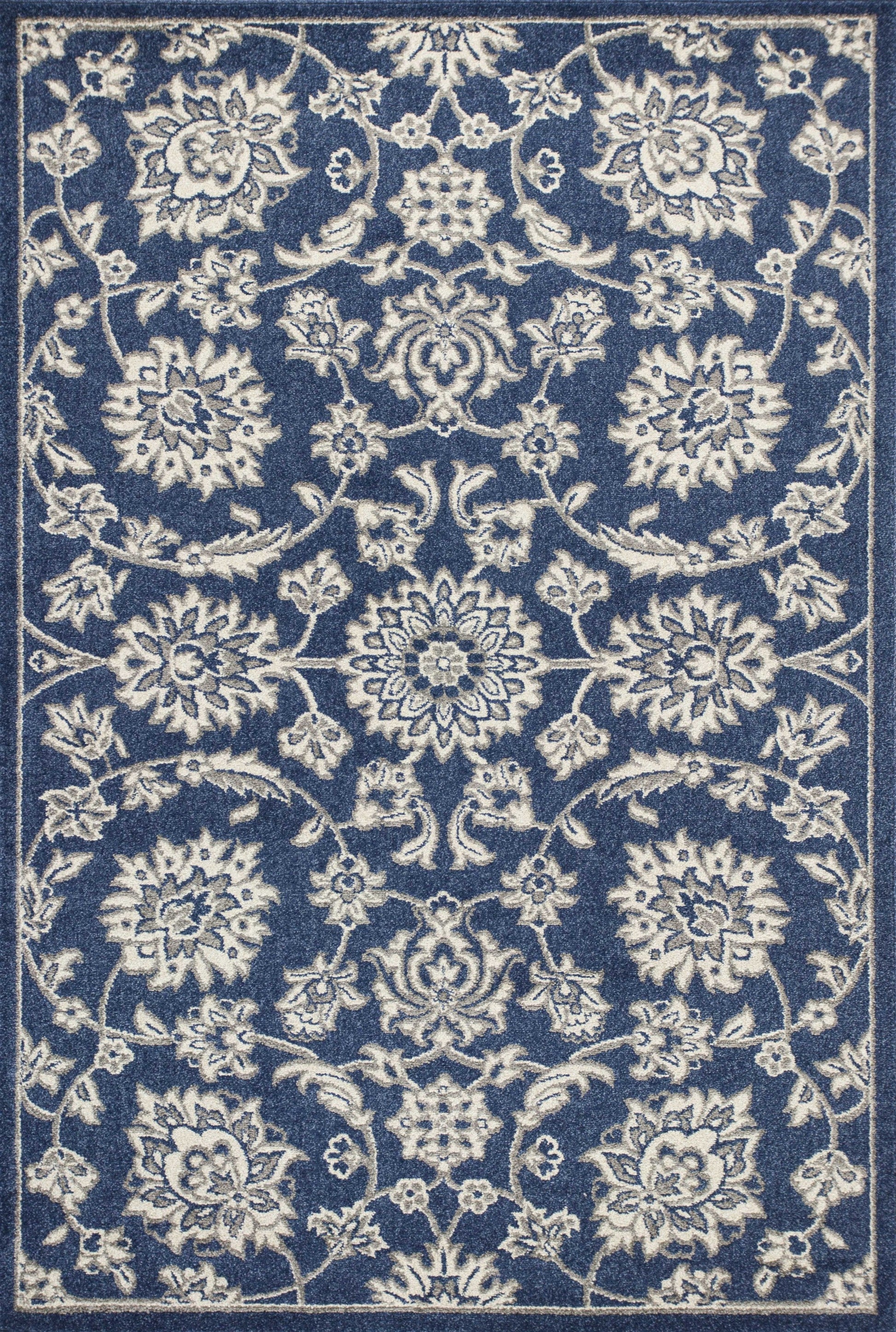 5' X 8' Denim Floral Vines Uv Treated Area Rug
