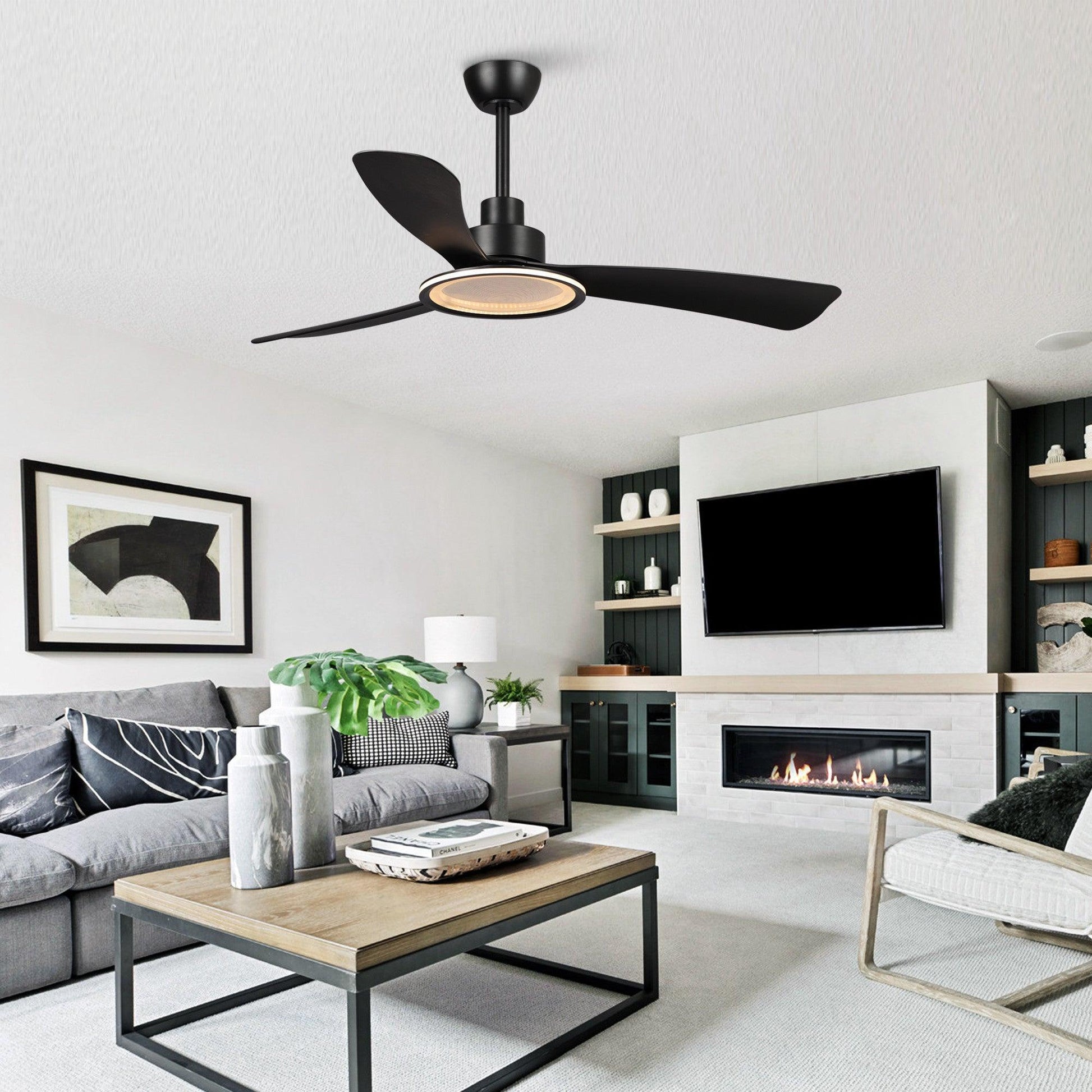 Simple and low-profile, this Bohemian 52-inch industrial-style indoor ceiling fan uses a quiet, low-voltage DC motor to deliver up to 3780 CFM of airflow to transform your indoor space. This fan is beautifully crafted, with a body made of matte black metal, equipped with 3 durable plastic blades and an LED light bar that can be adjusted to 3000K/4000K/6000K to meet your daily use needs. It is controlled using a remote control, allowing you to easily adjust the fan's 6 speeds. Easy to install and suitable for use in large rooms.
