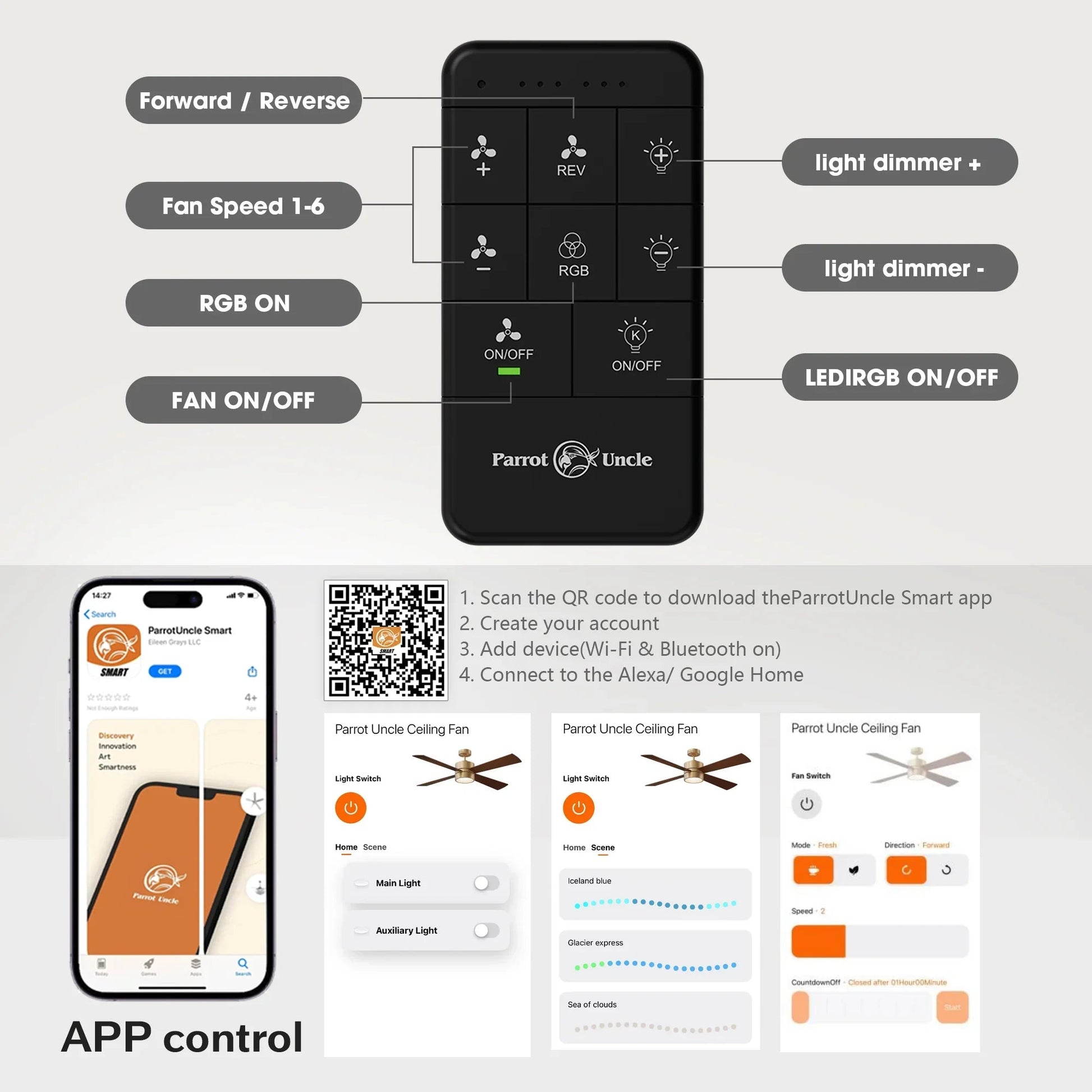 【Smart & Remote Control】: Operate via included remote or smartphone app (timer, memory function).