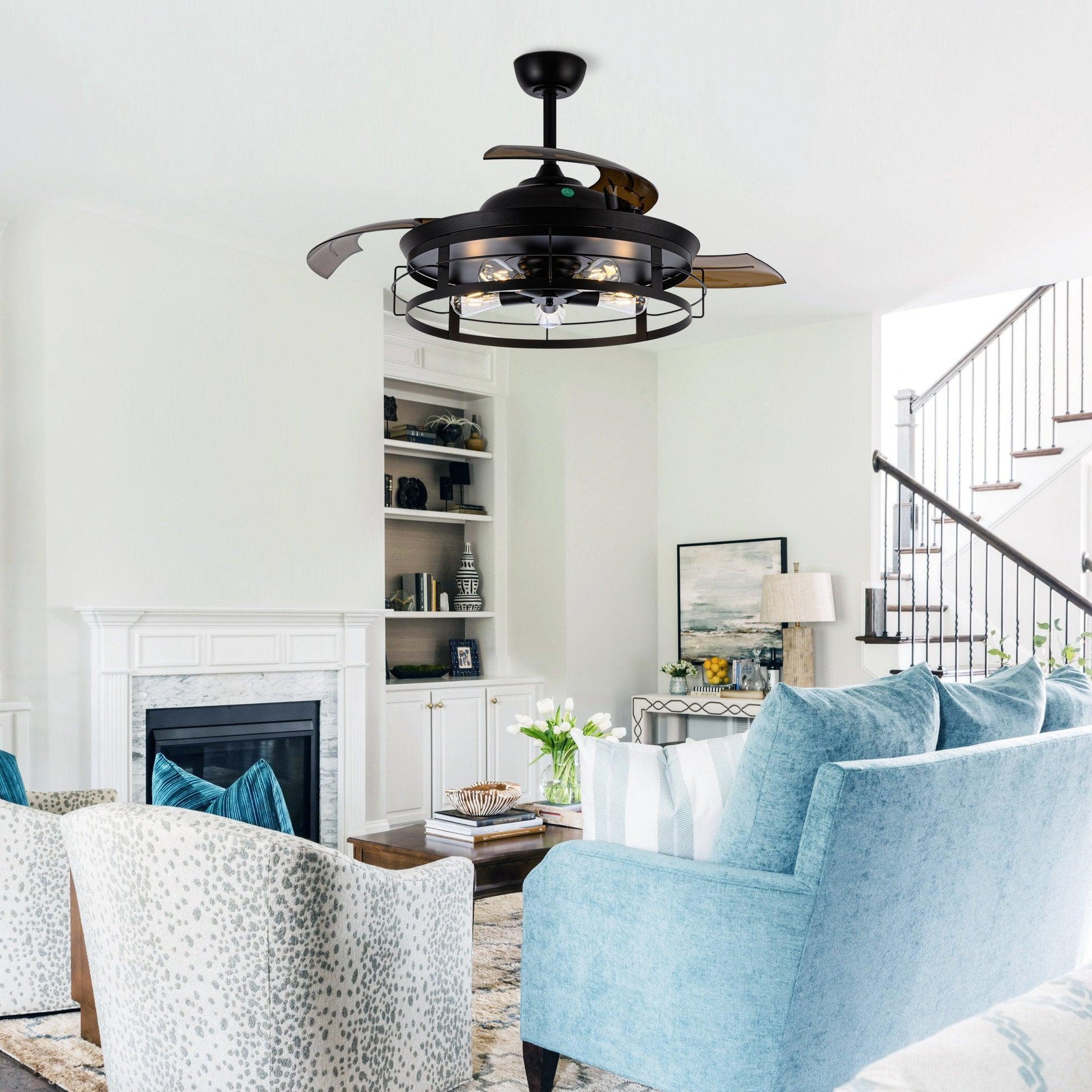 Function meets fashion in this radiant and chic 52-inch retractable chandelier ceiling fan. Three dark brown blades allow for maximum air movement! This matte black ceiling fan adds the perfect touch of glamour to your home while also keeping air circulating with multi-speed functions. The handy remote control provides independent light operation and speed control. The motor technology delivers powerful air movement with whisper-quiet performance.
