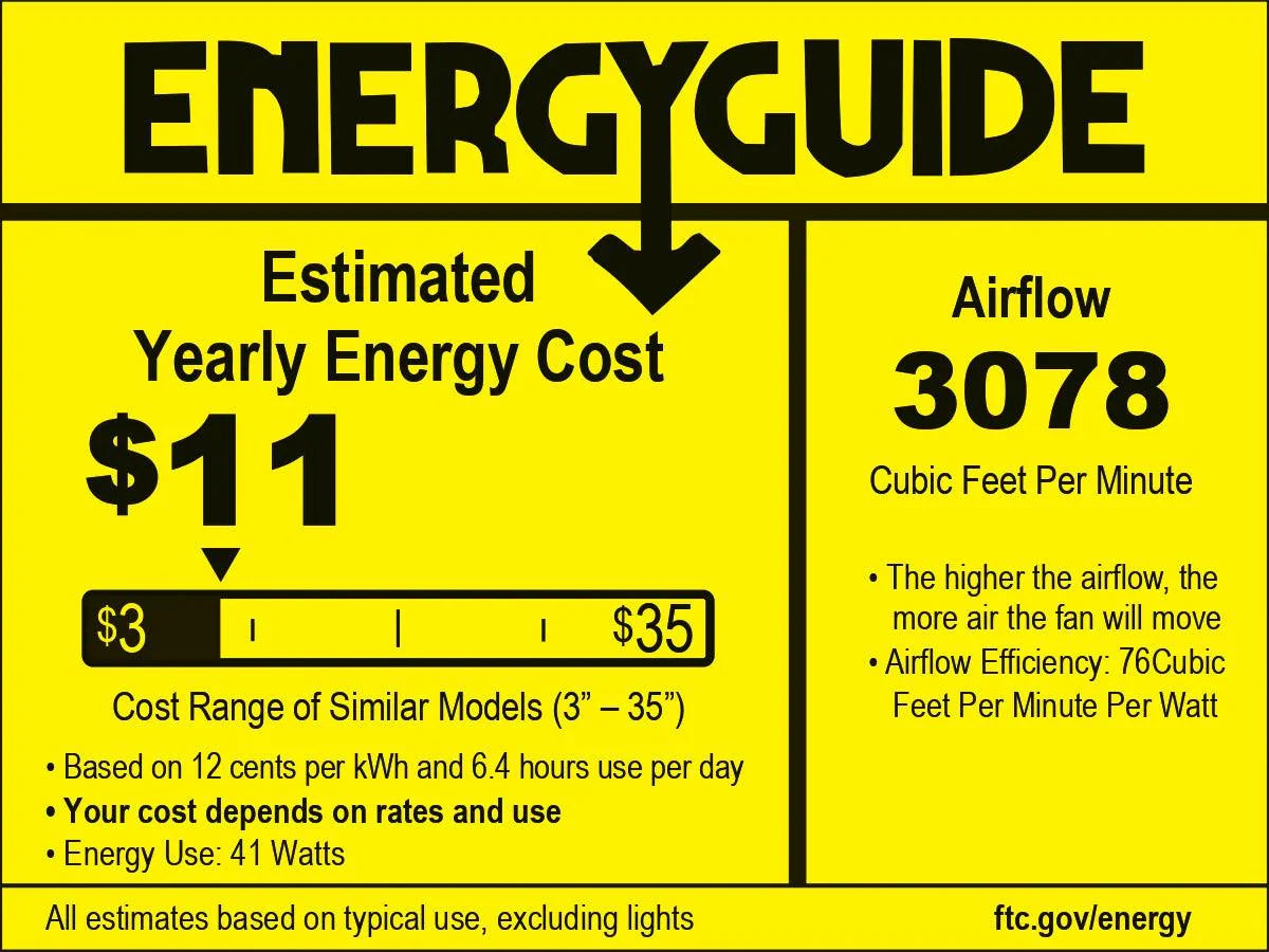 | Size | Finish | Rod | Blades | Light Fixture | Motor | Fan Control | Fan Speed | Location |