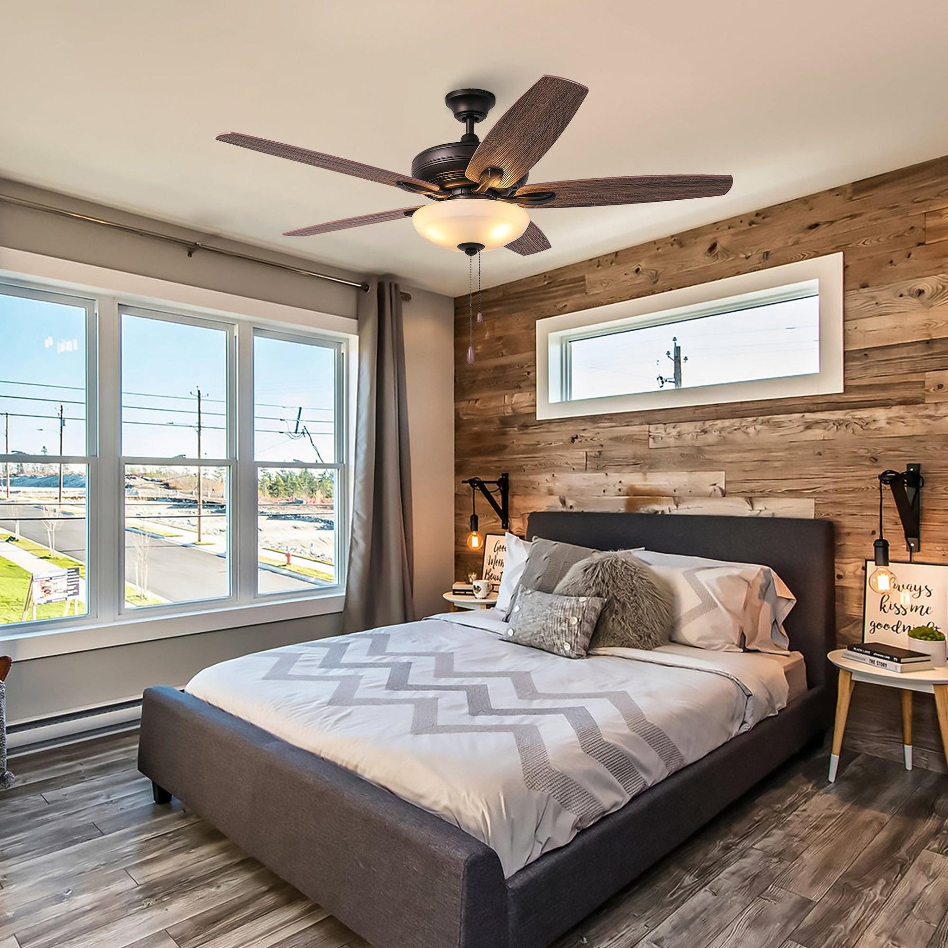 52" Traditional Pull Chain 5 Blades Ceiling Fan with Light