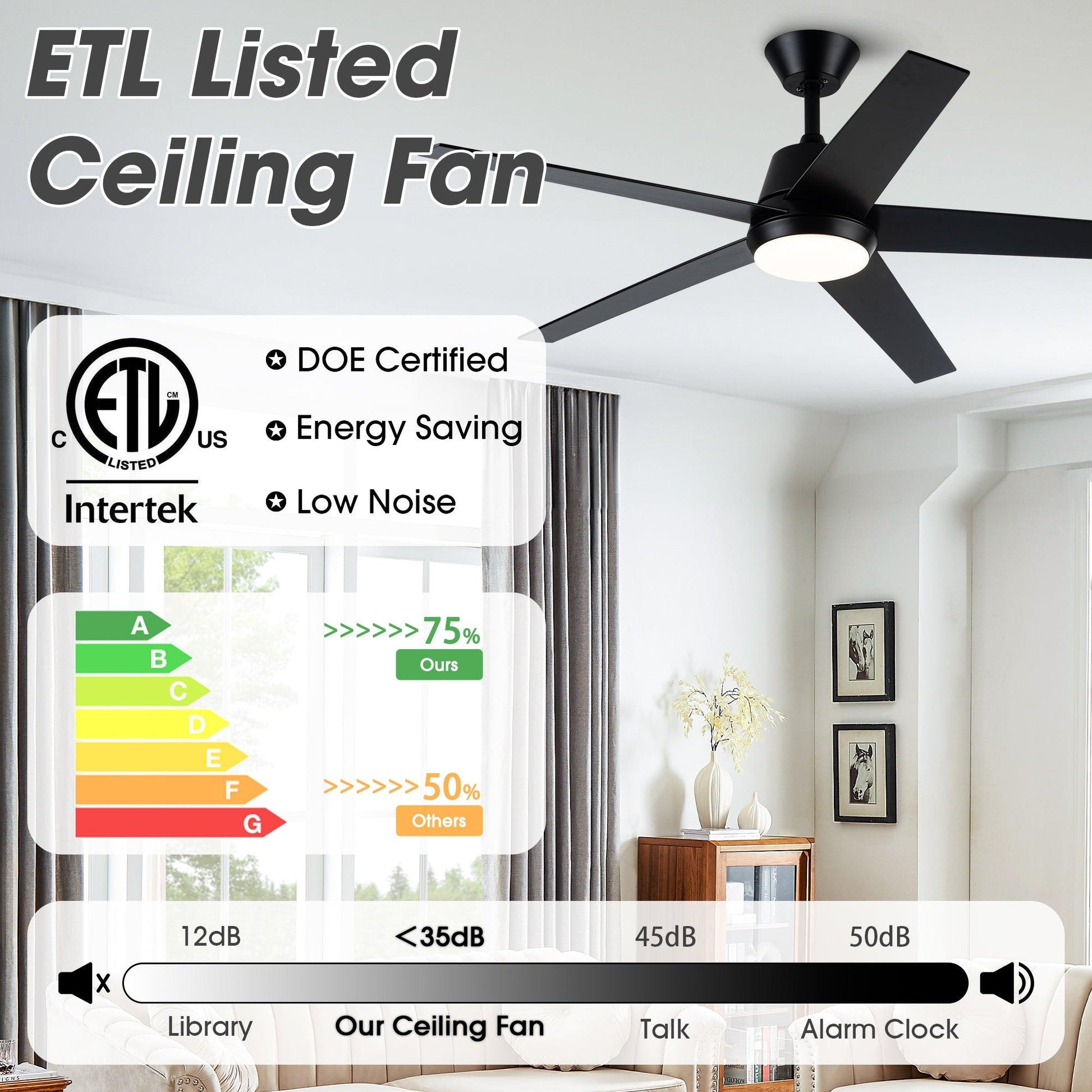 52" Vaczon 5 Blades Ceiling Fan with LED Light and Remote Control