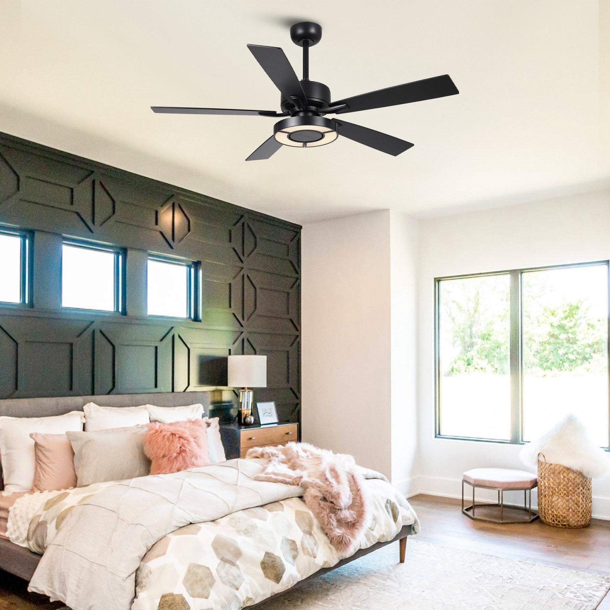 The Vendome 52-Inch Ceiling Fan is crafted from iron, complemented by a minimalist industrial style and 5 double-sided blades to match many of today's interior style trends. The Vendome comes with an LED light kit, and the included handheld remote control allows for easy operation of the fan's six speeds and light colors.