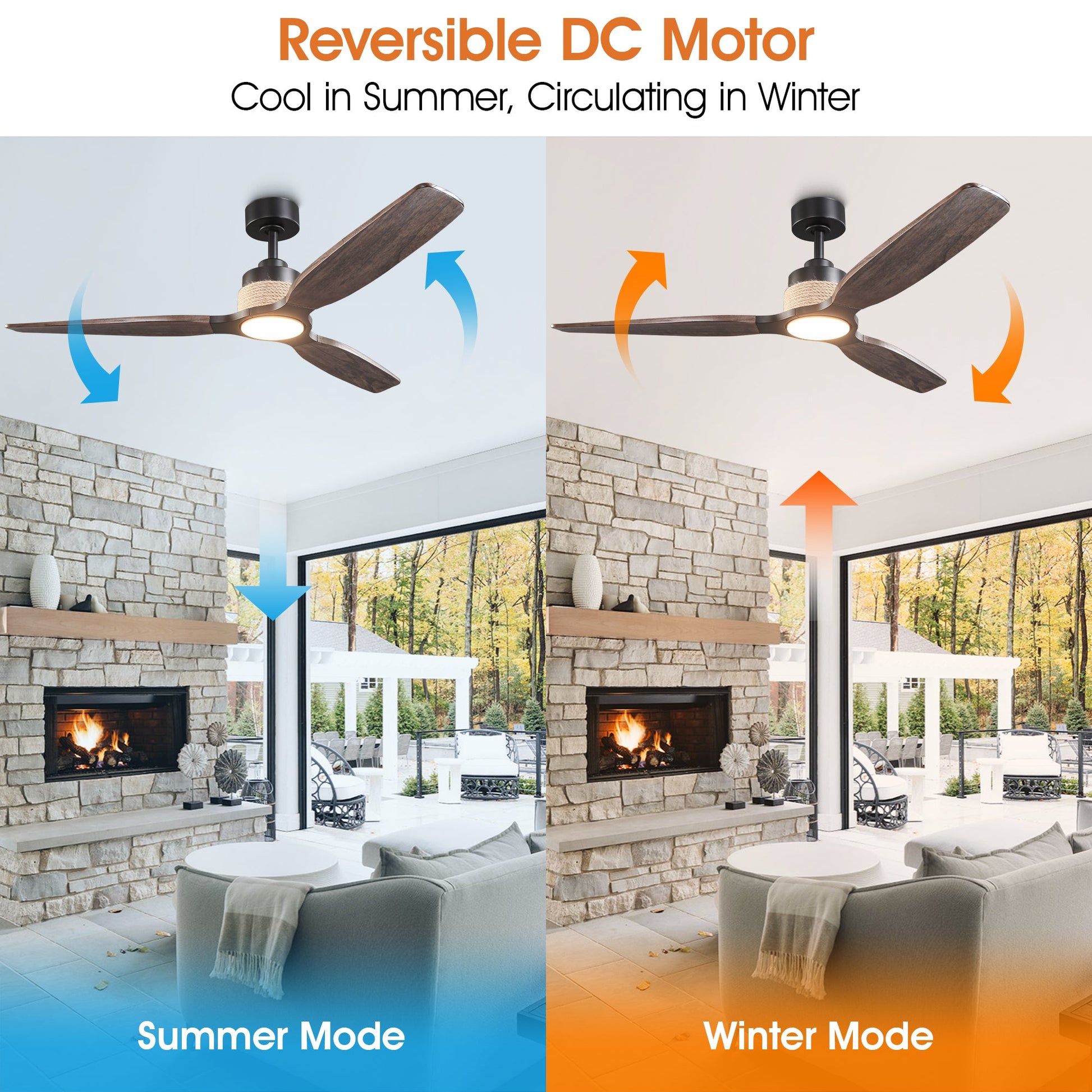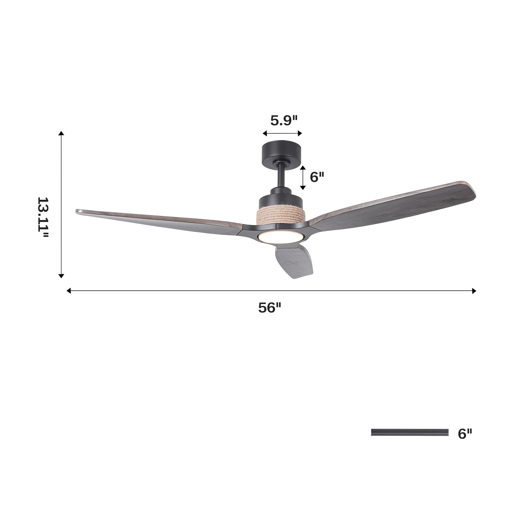 56 Inch Louise Downrod Mount LED Wood Blades Ceiling Fan with Remote Control