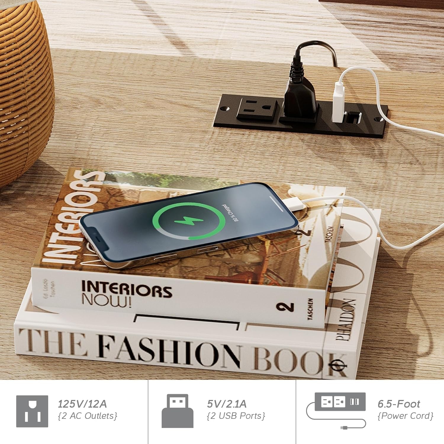 - Integrated charging system includes 2 AC outlets and 2 USB ports with a generous 6.5 ft cable to power devices neatly and reduce clutter.