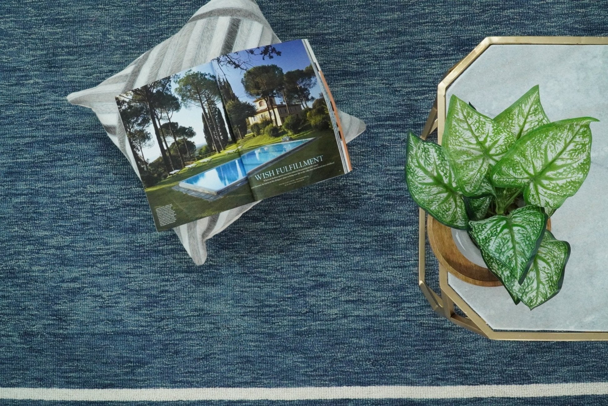 5x8 and 8x10 Hand Made Woolen Modern Solid Blue Area Rug | NAU004