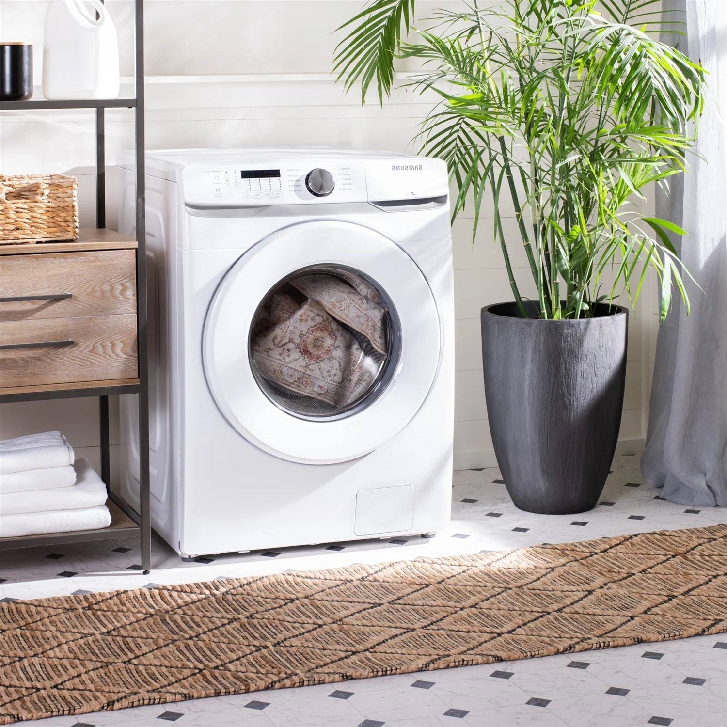 Keep your space fresh and stylish with this 6 ft. x 9 ft. Traditional Persian Style Washable Boho Light Grey Red Area Rug. It's power-loomed from stain-resistant polyester with latex and felt backing – easily toss it in the wash when those inevitable spills happen. The design features a light gray and rust-red repeating medallion print inspired by the style of traditional Oriental rugs. This area rug has an easy-to-vacuum pile height of 0.125'', which makes it ideal for rooms with more foot traffic. A rug pad is recommended.