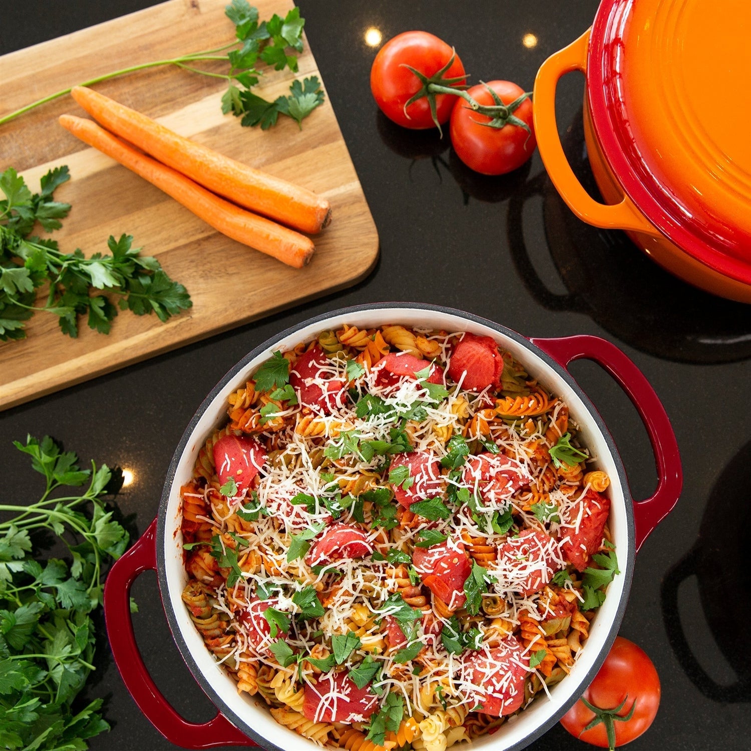 6 Quart Large Red Enamel Cast-Iron Dutch Oven Kitchen Cookware