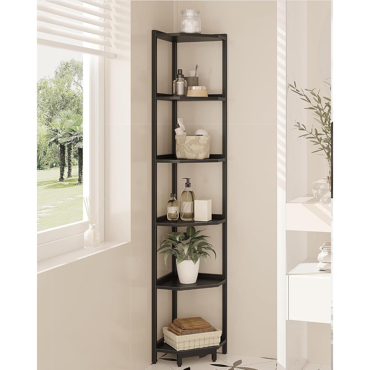 Enhance your space with the 6-Tier Black Corner Shelf Stand—an affordable, stylish solution that keeps your essentials organized while elevating your home decor.