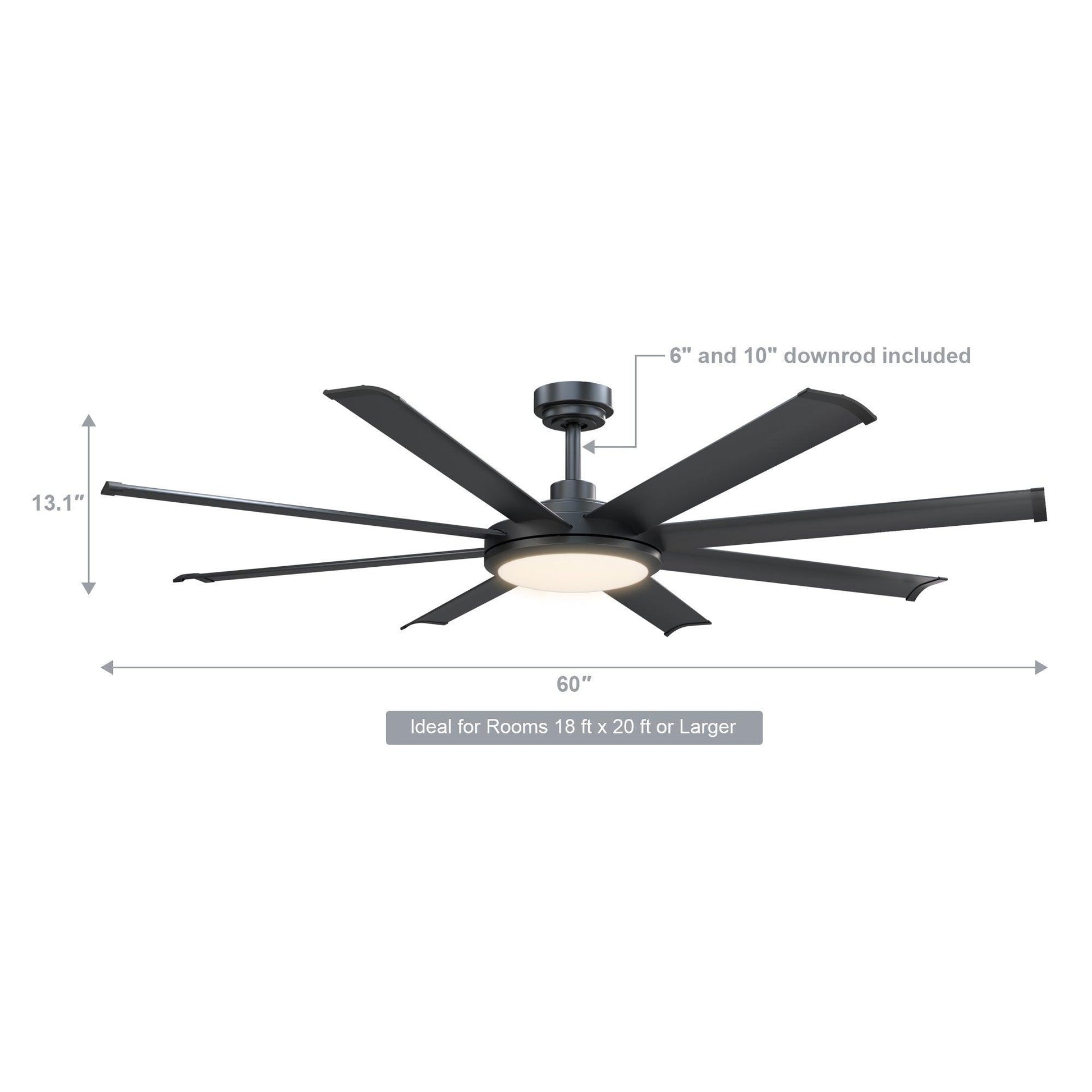 60" Black Led Indoor Ceiling Fan With Remote 8 Blade