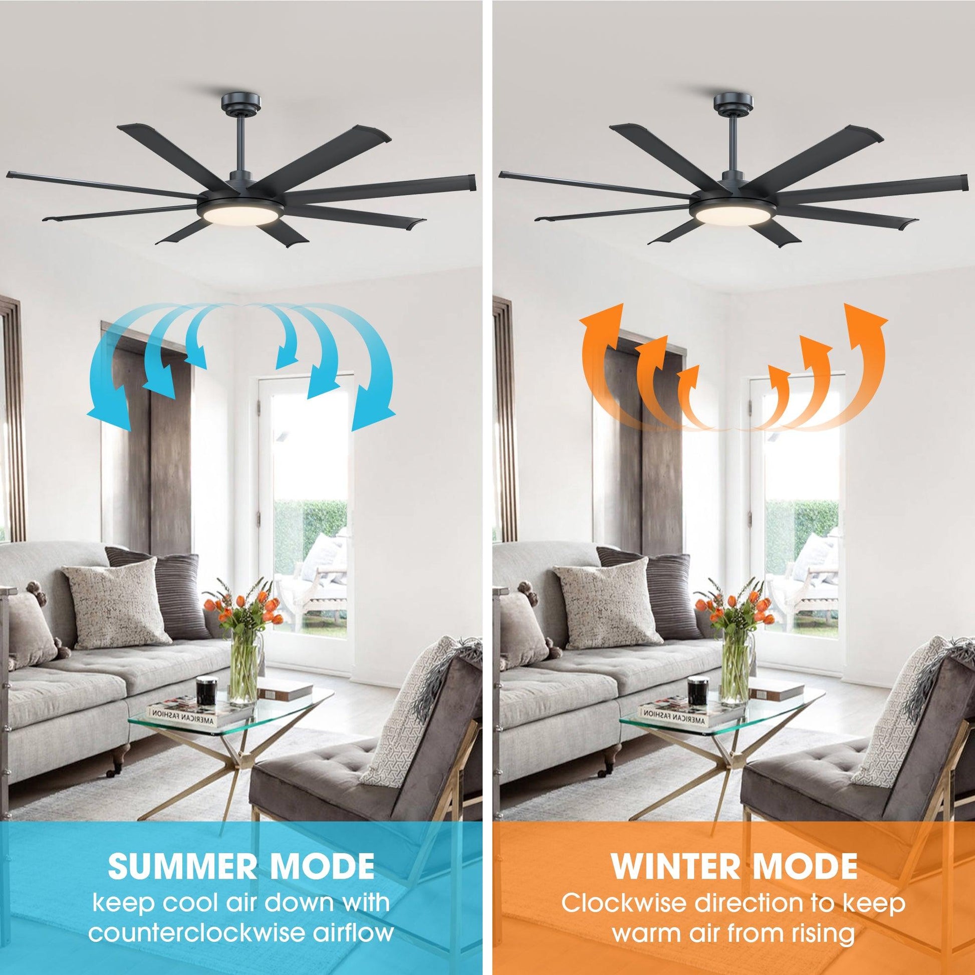 Add a industrial look to your home with the home ceiling fans, and LED black ceiling fan. This fan features 8 blades to help move air efficiently, with a quiet, wobble-free operation. The Handy remote control provides independent, downright operation and speed control. The design is perfect for rooms with low ceilings, and the integrated LED light kit offers versatile lighting options.