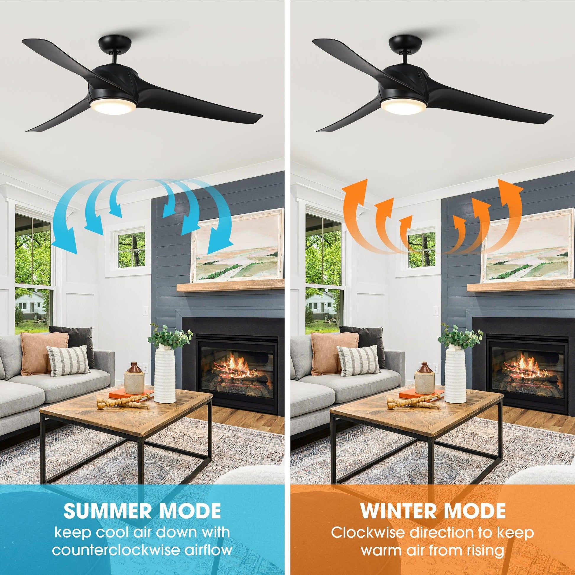 60" Wall Control 3 Blades Black Ceiling Fan with LED Lighting