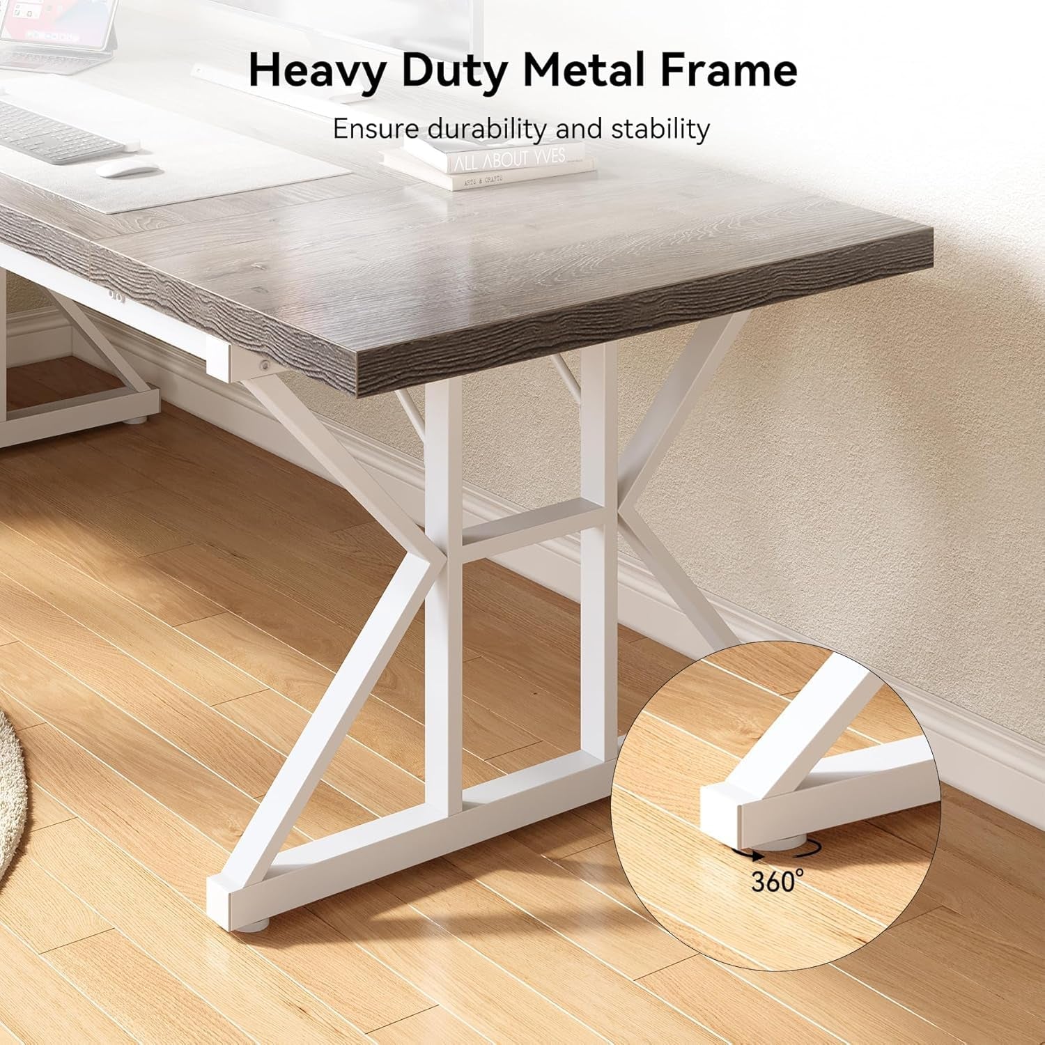 70.8 Inch Modern Executive Desk Grey White Home Office