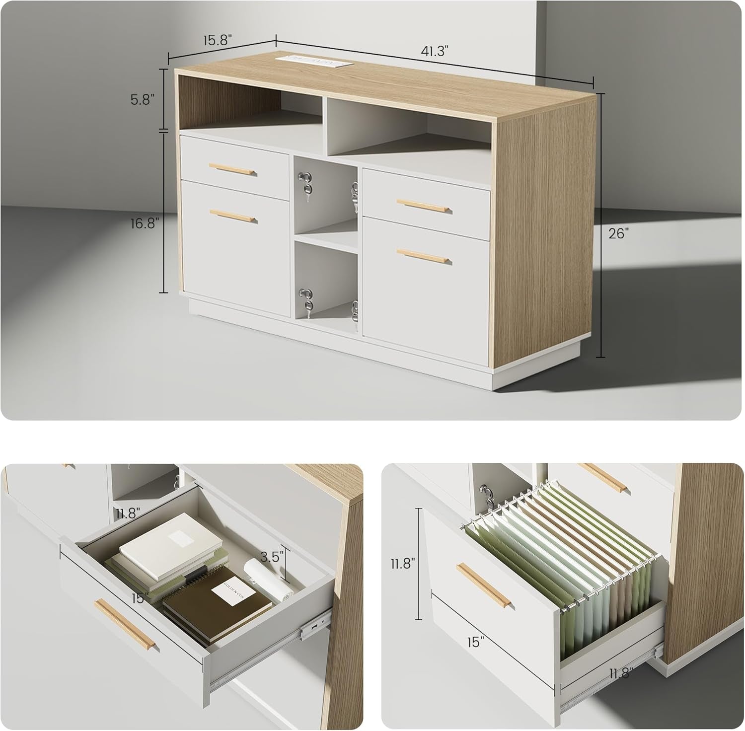 - Smart storage system: A dedicated cabinet area with open shelves and file drawers helps you organize books, documents, and office supplies, reducing clutter on your work surface.