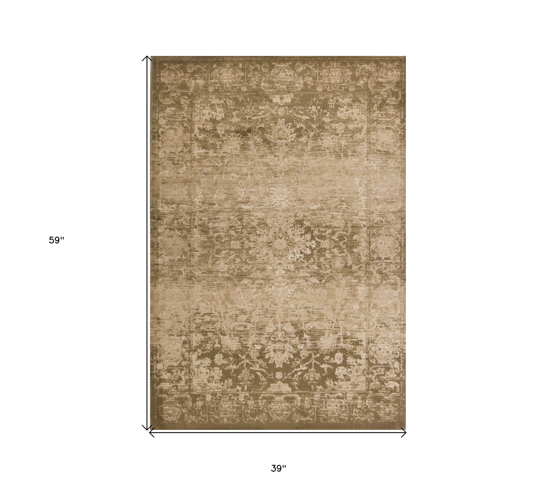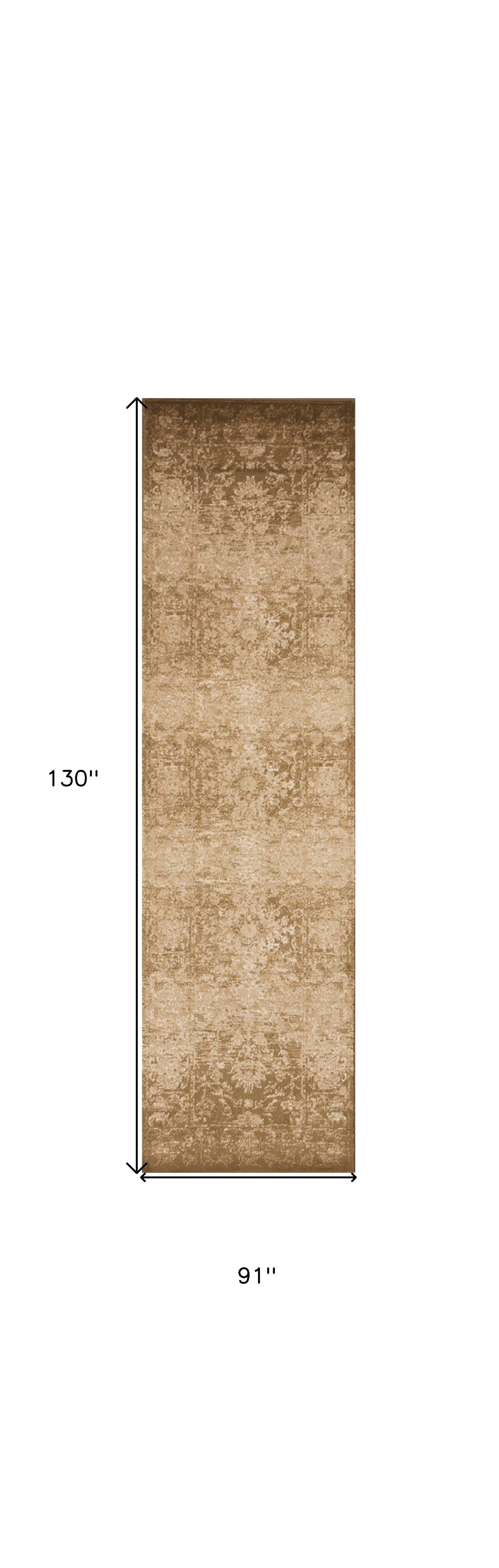 8' Beige Machine Woven Distressed Floral Traditional Round Indoor Area Rug