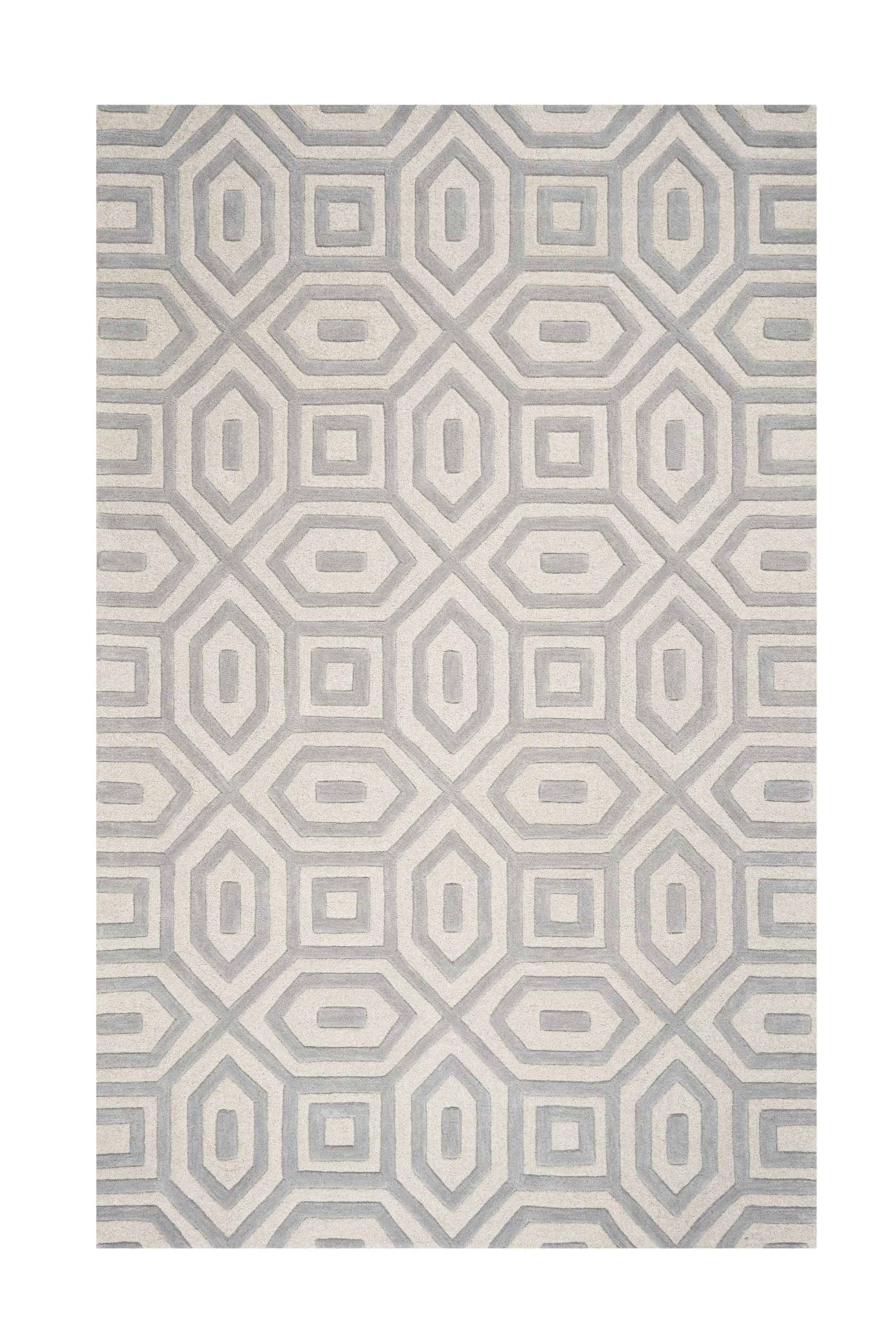 8' Grey Hand Tufted Geometric Indoor Runner Rug