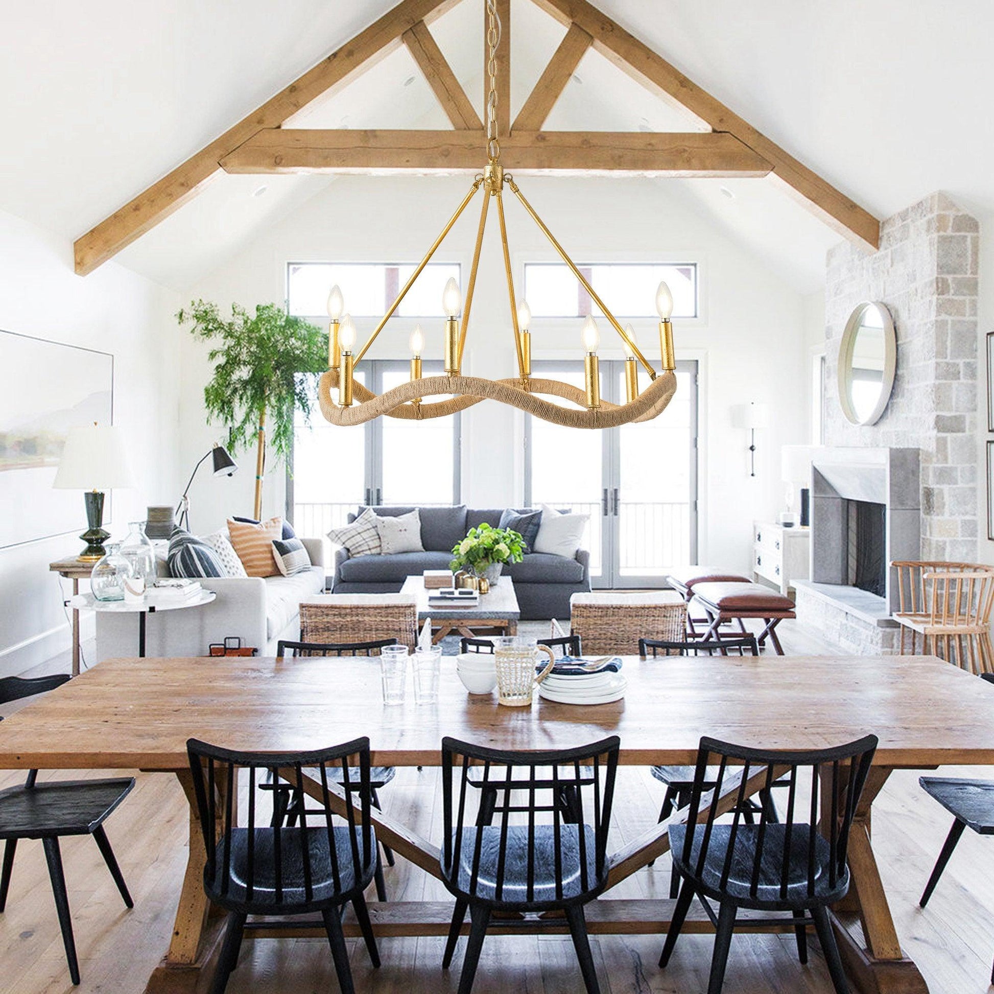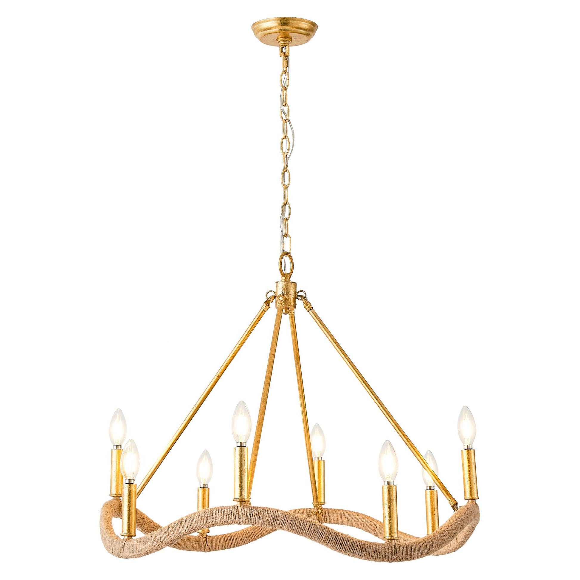 Illuminate your space with this golden modern candle chandelier. This 8-Light Golden Modern Candle Chandelier is an exquisite piece of lighting that will add elegance and class to any room. It features a stunning gold finish that exudes warmth and sophistication. The chandelier is designed with a modern twist on the classic candle style, giving it a unique and eye-catching appearance. The chandelier houses eight lights, providing ample illumination for your space. Each light is carefully placed to create a beautiful and balanced visual effect. The light it produces is soft and comfortable, making it perfect for creating a cozy and inviting atmosphere. Made from high-quality materials, this chandelier is durable and long-lasting. It's easy to install and compatible with a variety of bulb types, allowing you to customize the lighting to suit your needs. Whether you want to use it in your dining room, living room, or bedroom, this 8-Light Golden Modern Candle Chandelier will surely elevate your home's decor.