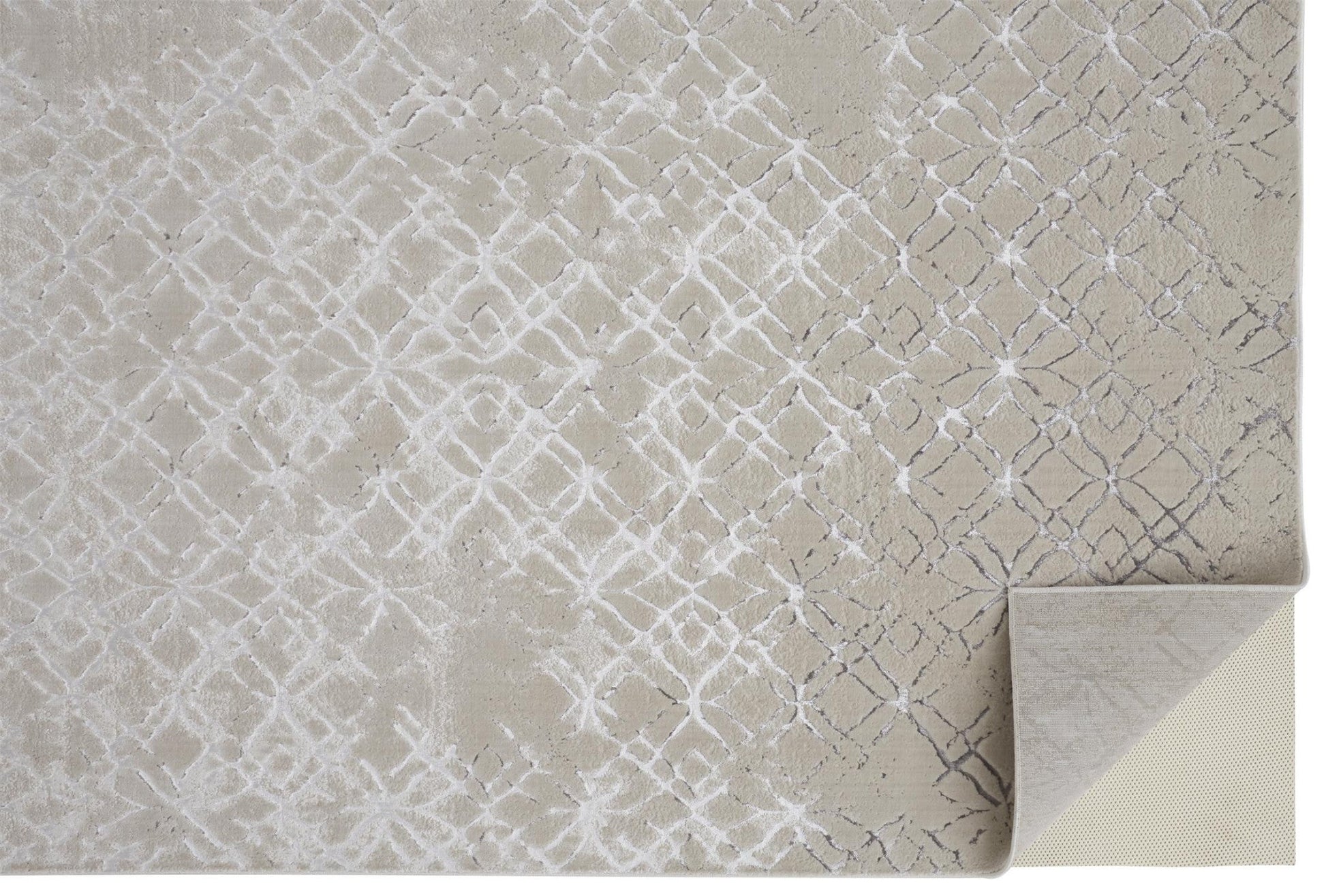 Add some artistry to your room with this 8' silver gray and white abstract stain resistant runner rug. This runner shaped rug features a abstract design in silver gray and white to give it visual interest. A classic shape marries with good looking design for your space This superior Turkish rug represents the highest quality and is built to last. Ideal for spaces with kids and pets, this rug is stain resistant to help repel stains and spilled liquids. Place this area rug against a hardwood or tile floor and it will enliven your living space with style and sophistication. 0.39" H x 34" W x 94" D