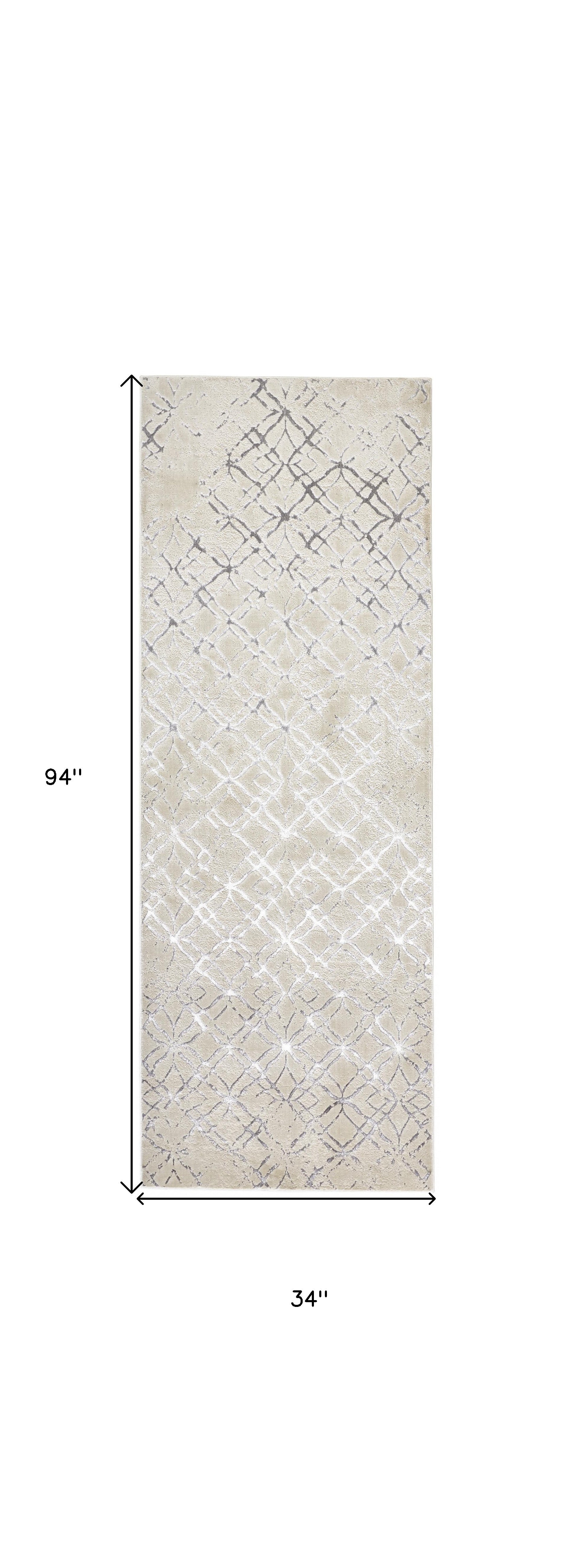 8' Silver Gray And White Abstract Stain Resistant Runner Rug