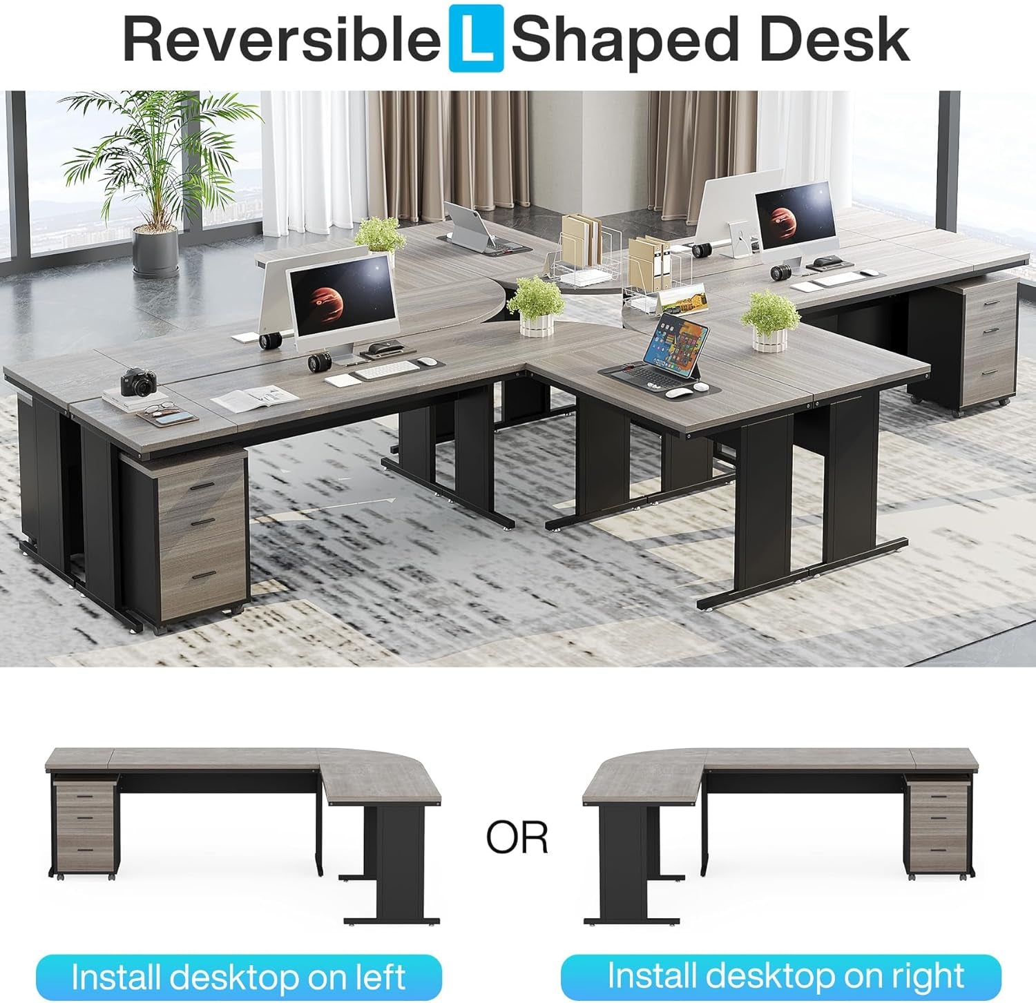 - Reversible, left- or right-handed layout: the L-shaped design can be configured to fit your space and preference.
