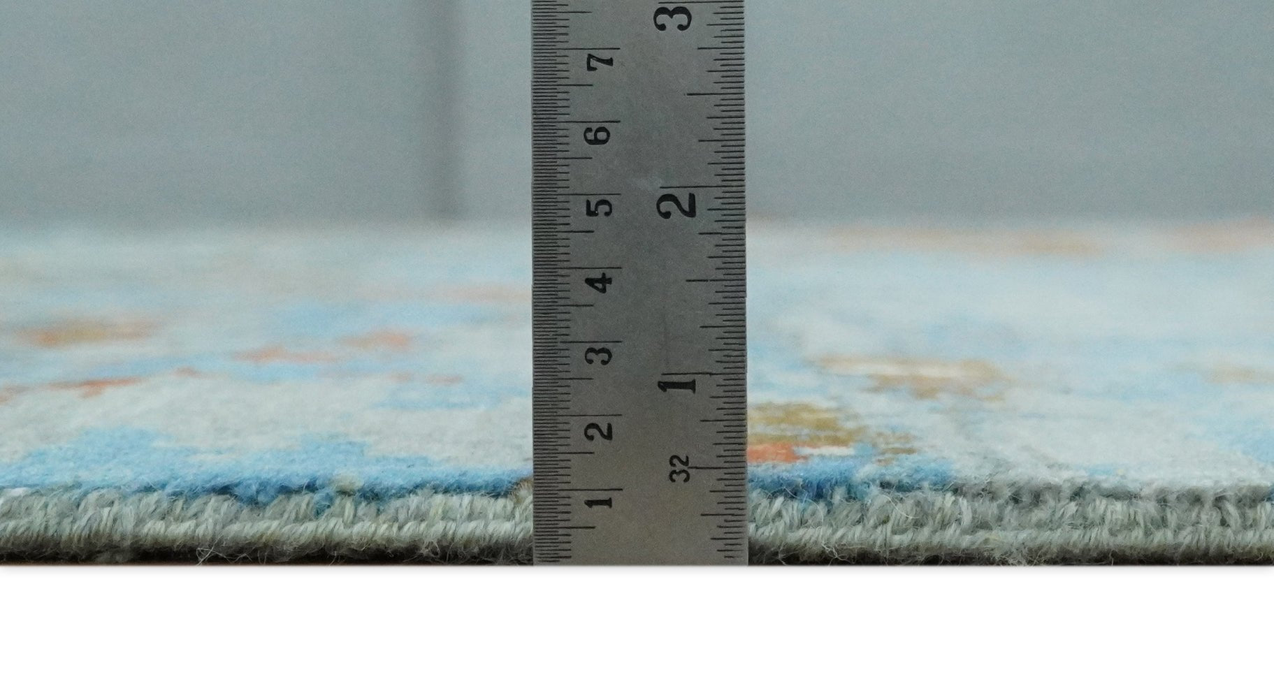 8x10 Fine Hand Knotted Beige and Blue Modern Abstract Style Antique Wool and Silk Area Rug | AGR43