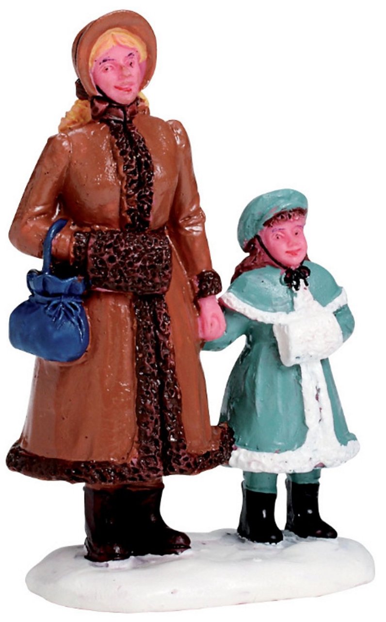 Embrace the charm of winter with the delightful A Day In Town Village Figurine, a sweet depiction of a mother and daughter braving the winter weather together. Crafted from durable resin, this figurine captures the warmth of family and the spirit of togetherness amidst a snowy backdrop. With loving details in their attire and the joyful expressions on their faces, it’s sure to add a touch of heartwarming nostalgia to your holiday decor or any seasonal display.