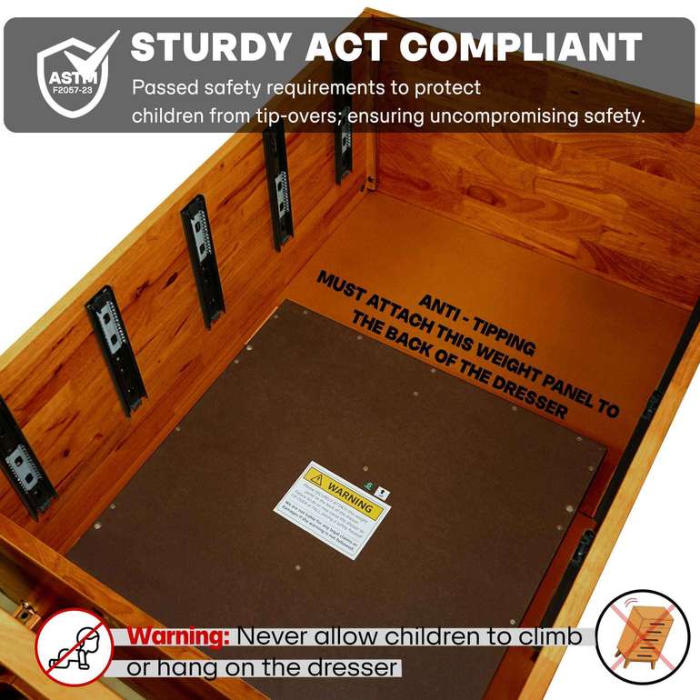 - Durable Construction: Made from premium acacia wood, the dresser is built to last, resisting scratches and wear.