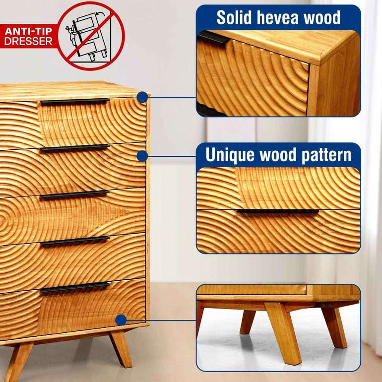 Acacia Harmony Dresser with 5 Drawers for Stylish Storage Solutions