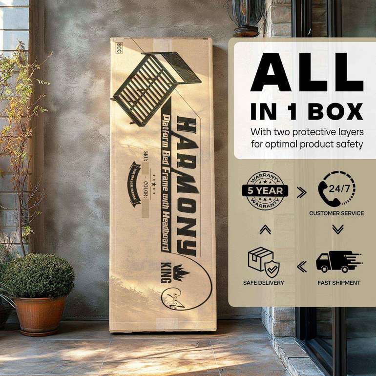 Comfort is crucial for a restful night’s sleep, and the Harmony solid wood Platform Bed Frame delivers just that. With its solid structure and slat design, your mattress will be properly supported, ensuring you wake up refreshed and revitalized each day. The headboard isn’t just for decoration; it offers cushioned backing, perfect for those cozy nights spent reading or watching your favorite shows in bed.