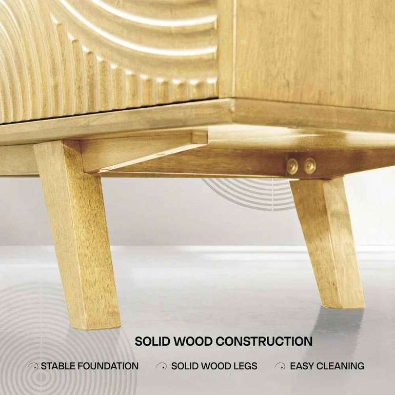 The acacia wood used in the Harmony TV Stand with Storage is known for its rich color and beautiful grain patterns. This means that each unit is unique, ensuring your stand is one-of-a-kind. It's not only a functional piece but a stunning work of art that seamlessly blends into various decor styles—be it contemporary, rustic, or industrial.