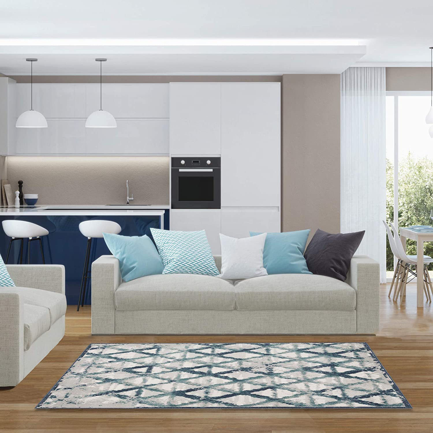 Achim Capri 3 Piece Rug Set, Rizzy Blue, 3-Piece Set, 2x3, 2x5, 5x7 Feet