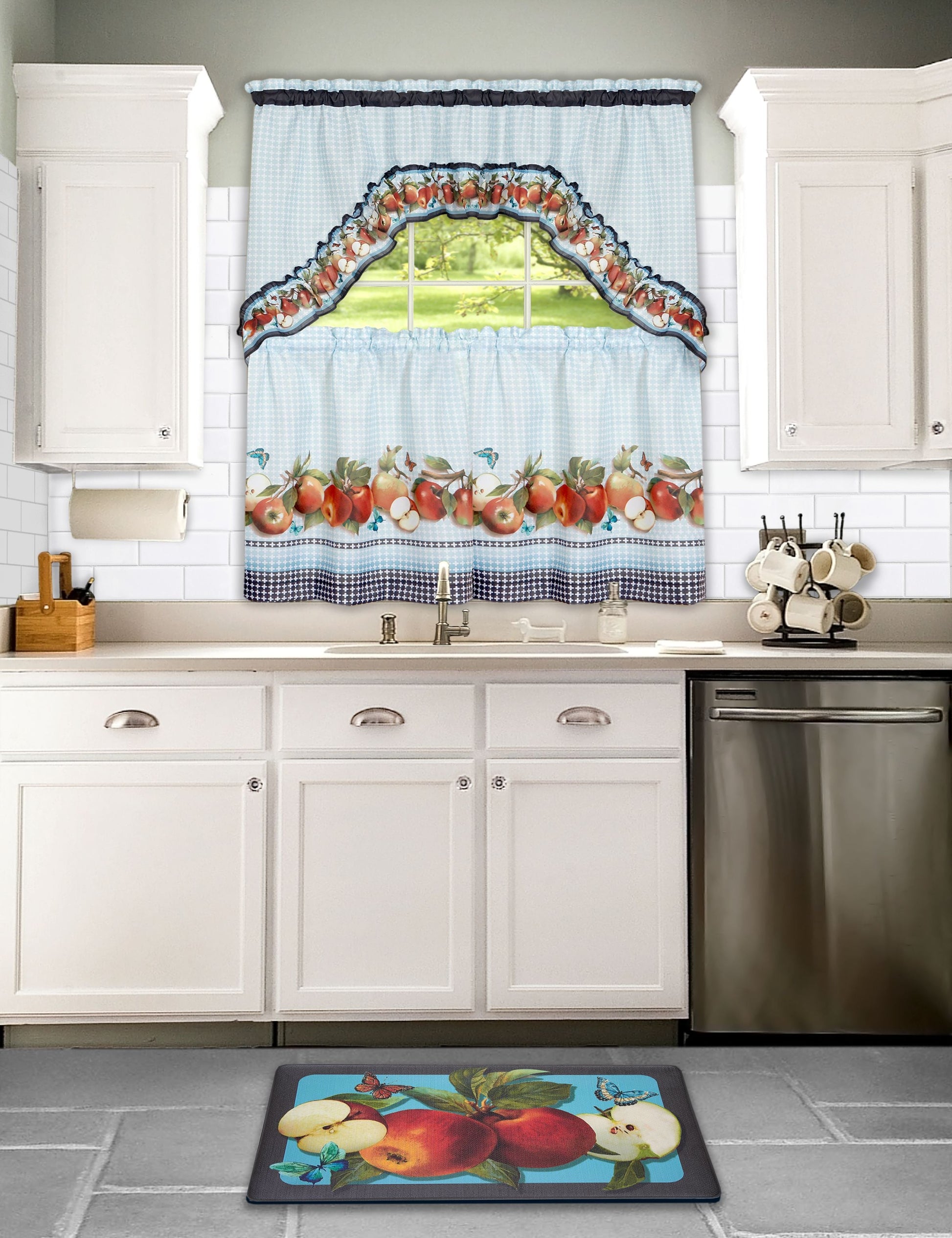 The Achim decorative anti-fatigue mat is the perfect mat for your home! Place this comfortable mat in your kitchen or doorway. Features: resilient foam to reduce fatigue, beveled edges, non-slip back, with Eco-PVC Foam, and is a large 18x30 inches. This mat is resilient and supportive and conforms to the contours of your feet and reduces fatigue when standing. Mat has gorgeous apples, butterflies, and leaves. Colors: blue, red, brown, green. Size: 18x30 Inches (46cm x 76cm).