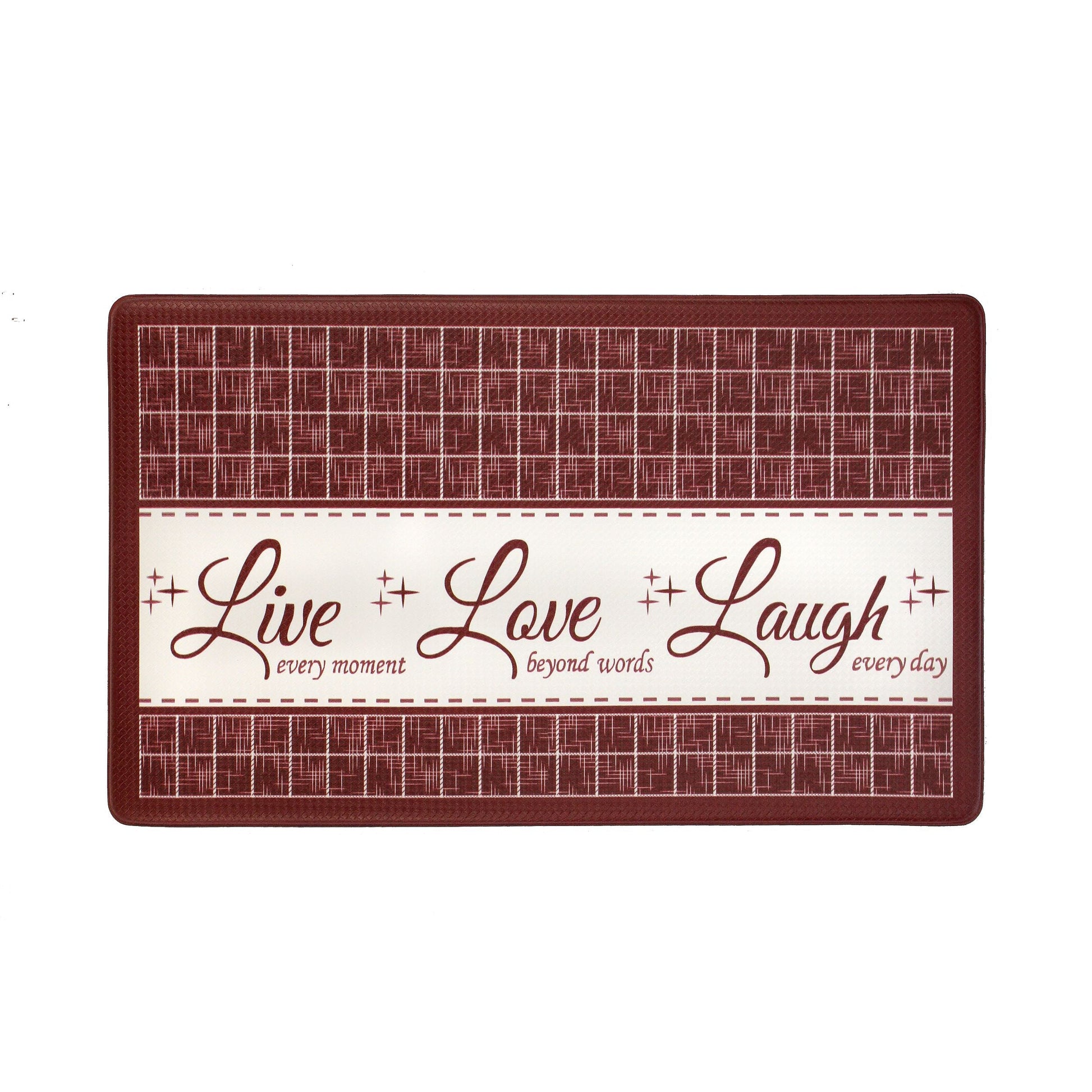 Achim Live Love Laugh Decorative Anti-Fatigue Mat, Burgundy, 18x30 Inches