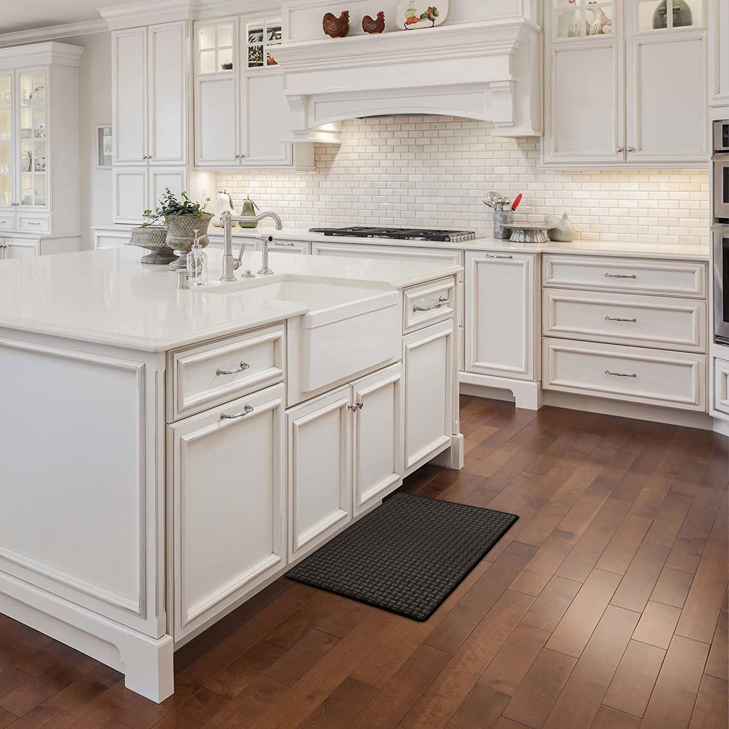 Achim Woven-Embossed Faux-Leather Anti-Fatigue Mat, Black, 18x30 Inches