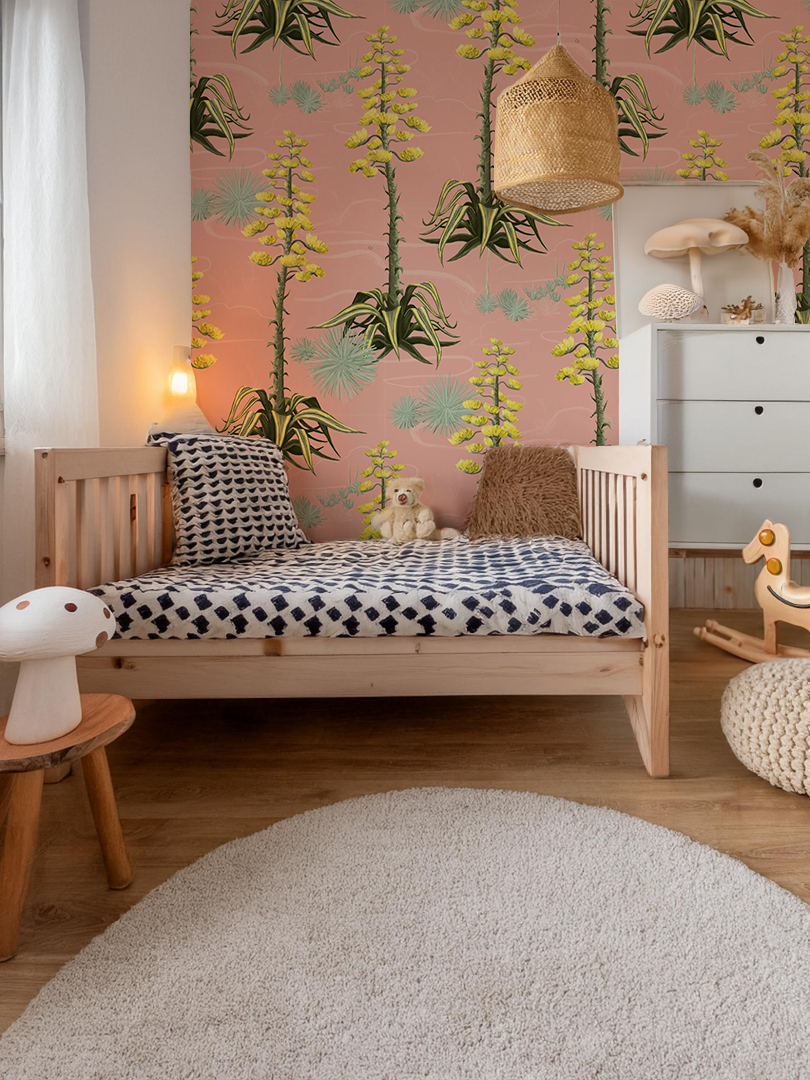 Bring the beauty of the desert into your home with Agave Valley Wallpaper. This stunning piece, featuring artwork by Samantha Santana, captures the essence of vintage landscape wall coverings with a modern twist. With easy installation options and removable design, it's the perfect addition to any space.