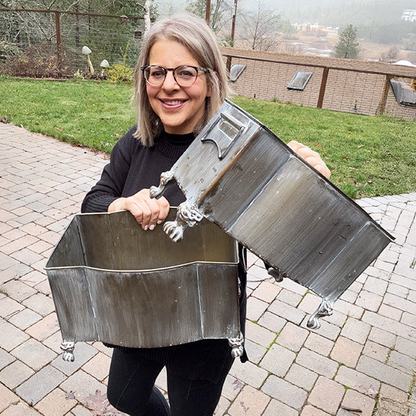 Aged Metal Footed Planters, Set of Two