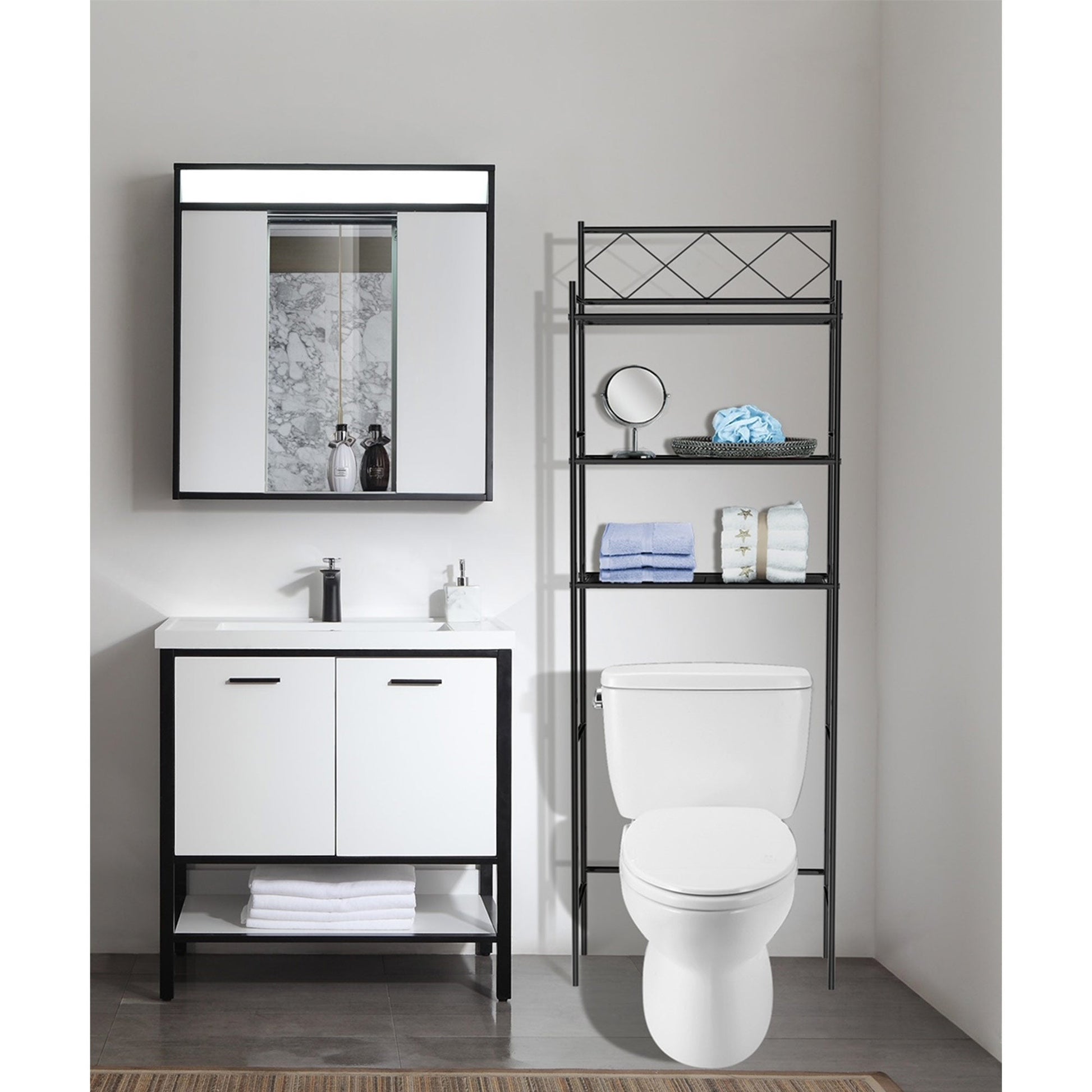 Featuring three open wire shelves, this space saver provides ample storage for various bathroom essentials, from towels and toiletries to decorative items. Its compact design optimizes vertical space, making it ideal for bathrooms in need of organization.