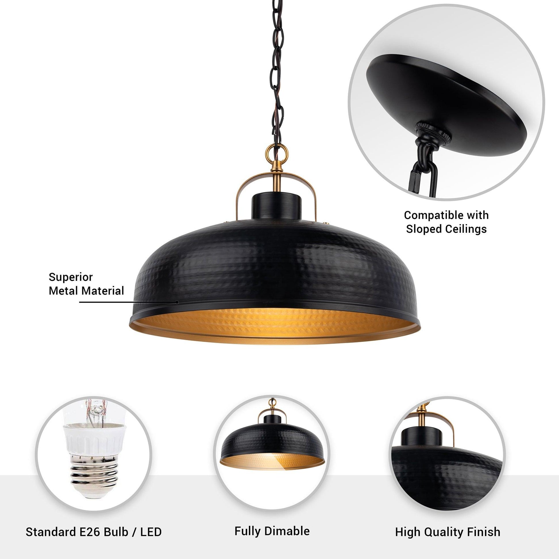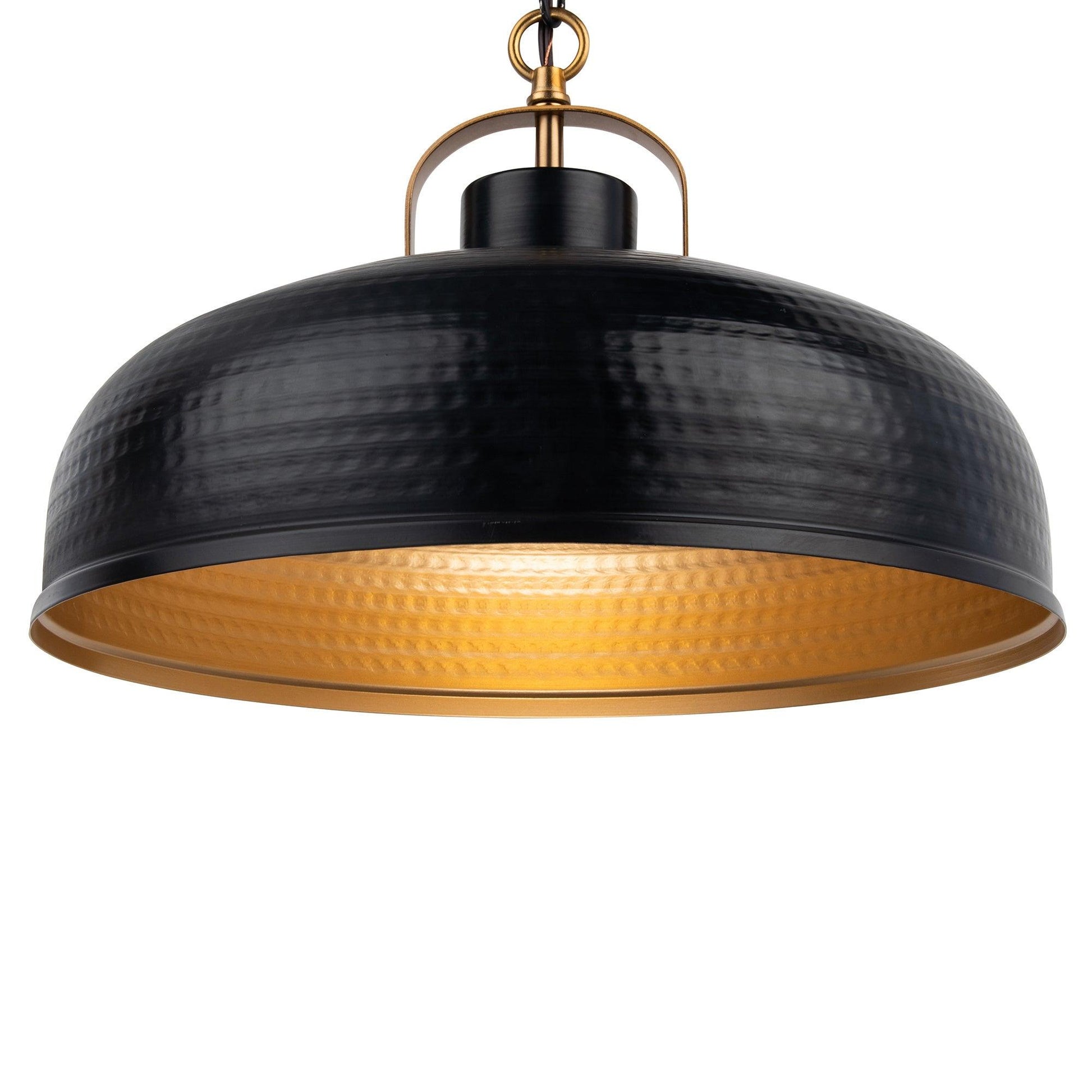 Black & gold dimmable light ceiling mounted pendant, with a restoration designed appearance. The pendant is features a gold finish inside and a beautiful hammered black finish outside to complete the design. It can support one 60W bulb (not included) and is fully dimmable. Giving you options to adjust how much light you want in the location.
