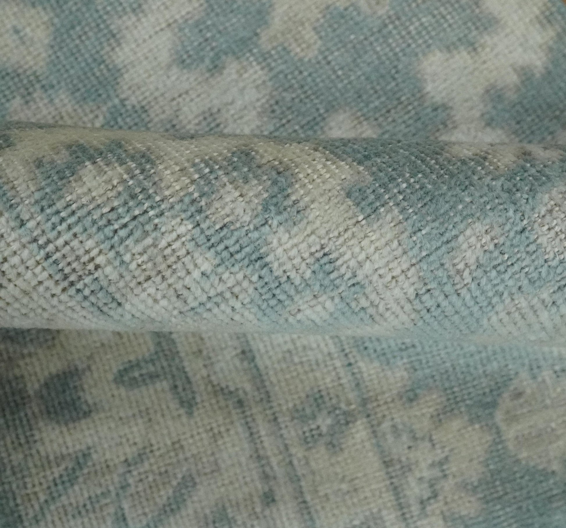 Oushak rugs have been made for centuries and carry a tradition and art. This specific rug is made in India, in the city of Bhadohi. Bhadohi is one of the biggest rug manufacturing cities. Carpet weaving in the region dates back to the 16th century during the reign of Akbar. The skilled artisans of Bhadohi have been carrying the tradition of rug-making for centuries.